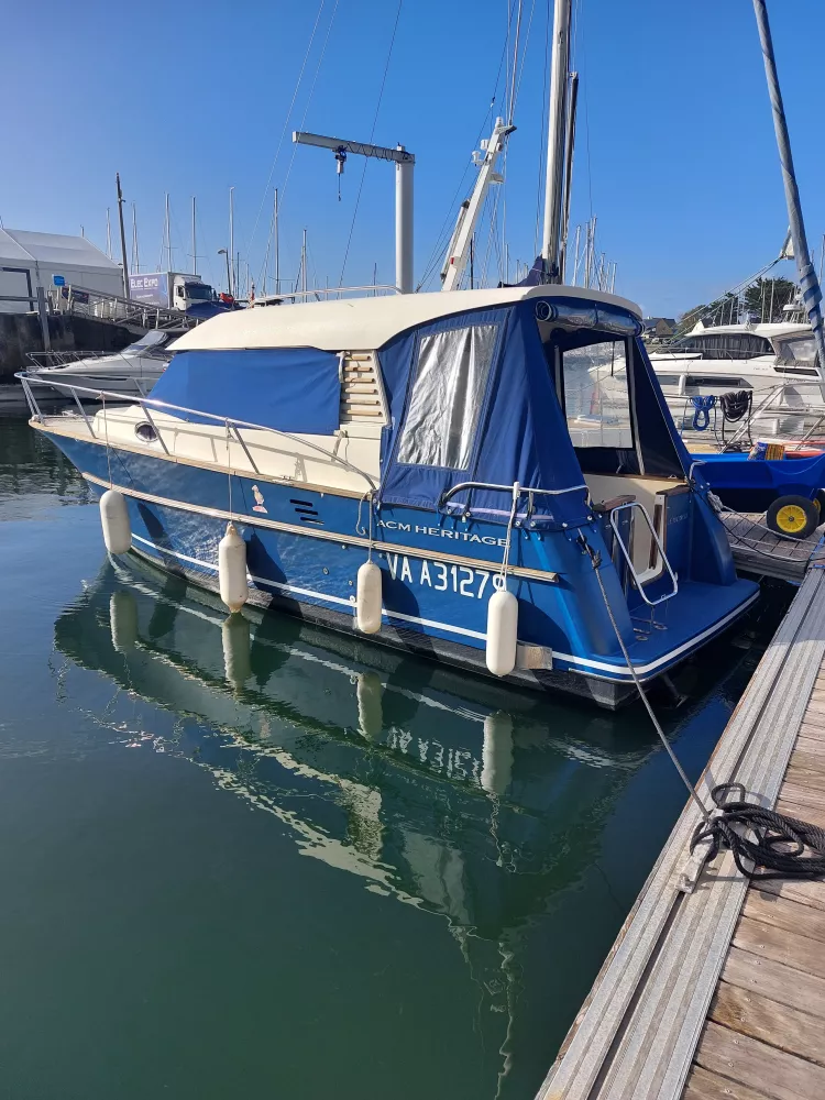 1 couchette double à l'avant, banquette transformable 2 places, taud arrière, lavabo et wc, douche extérieure, réfrigérateur, plaque à gaz 2 feux, barbecue de balcon