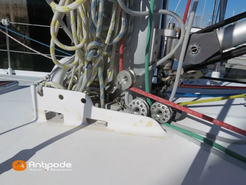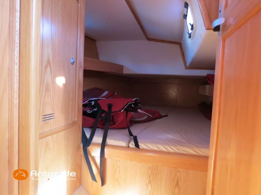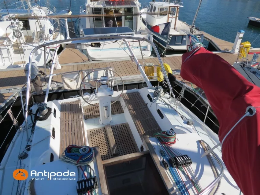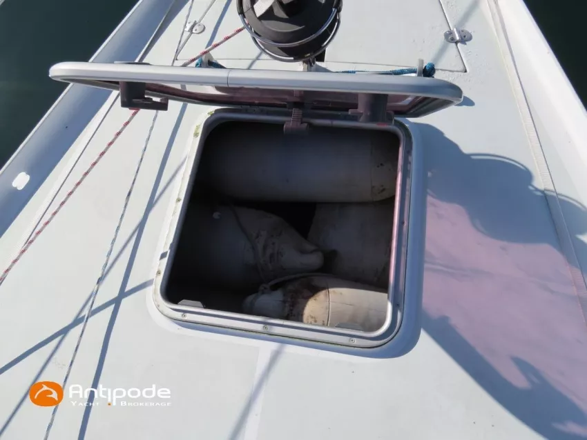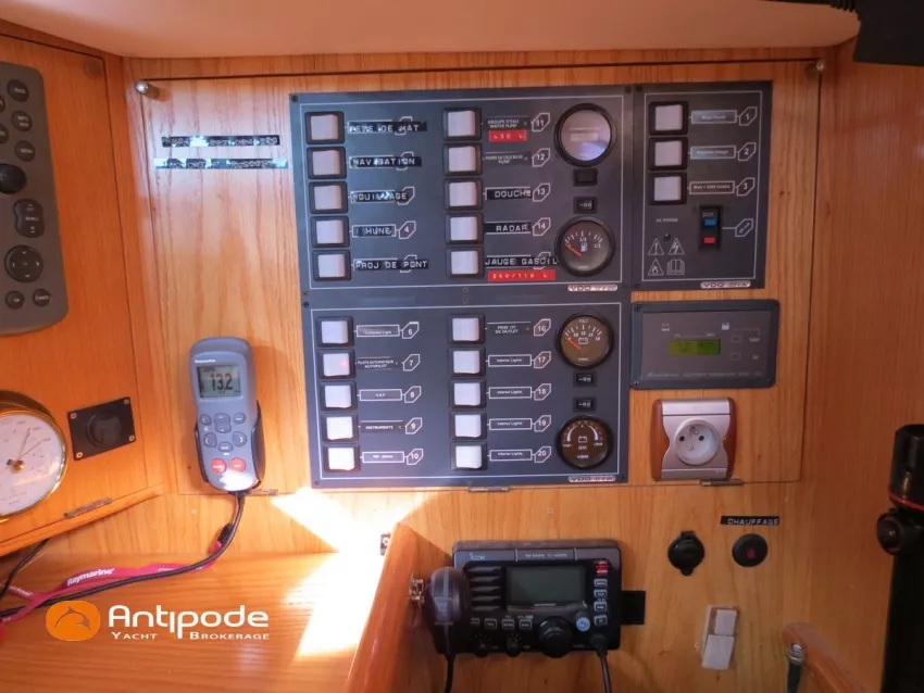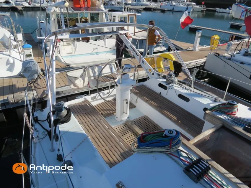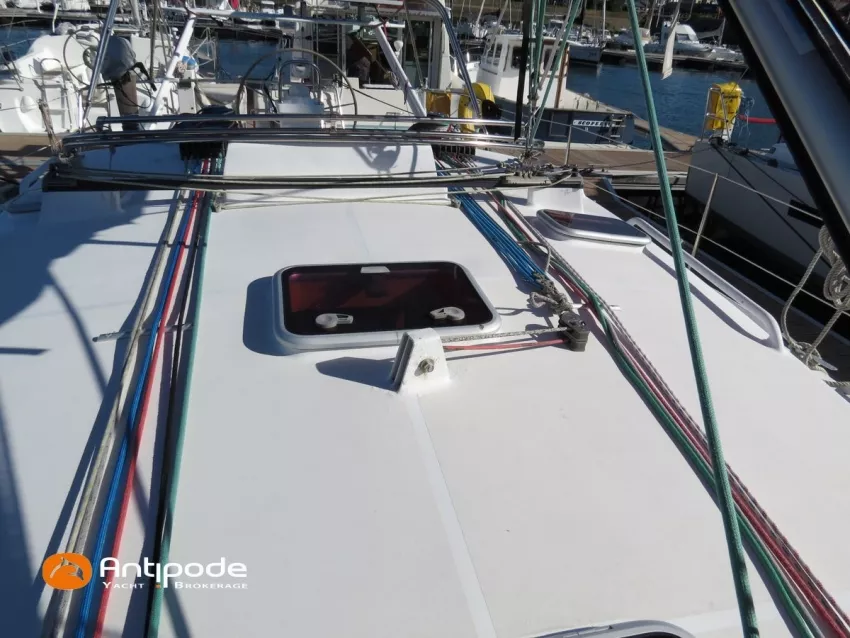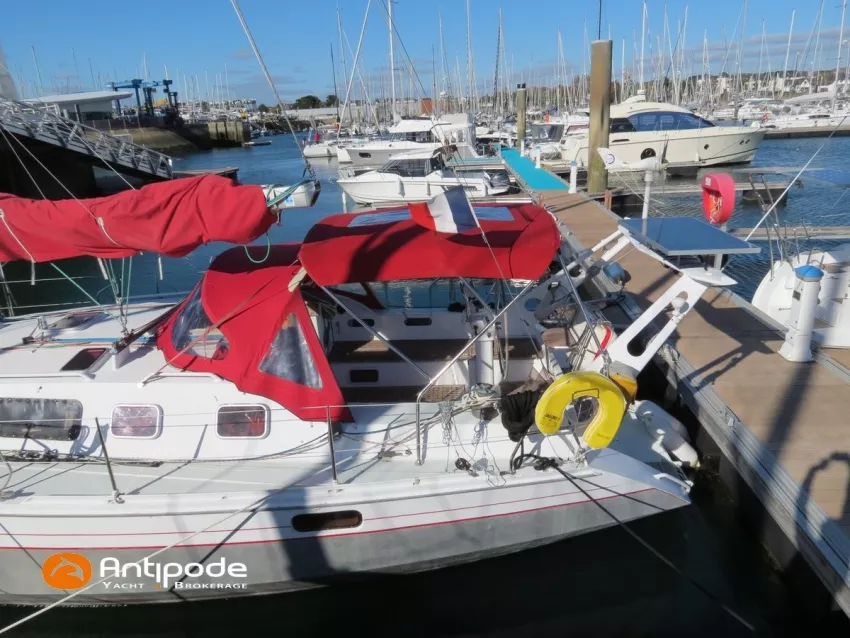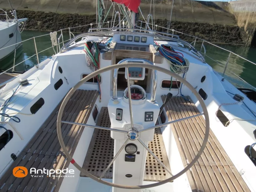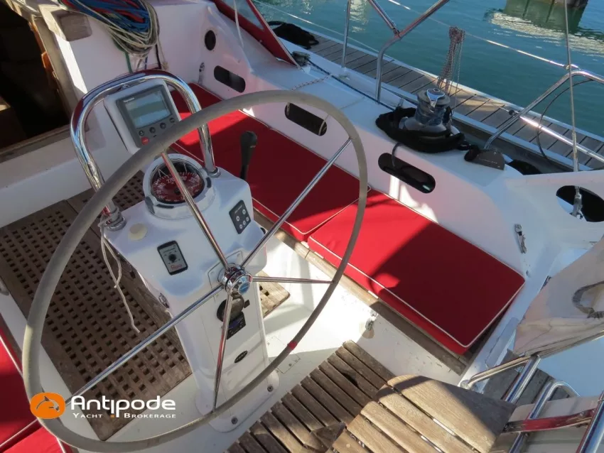 OVNI 395, 2009, VOLVO D2, 55 cv (2300 (estimation) h), Propulseur d'étrave, Coque isolée, Version d'aménagement intérieur 1 cabine avant, 2 cabines arrières, Soute à voile dans le poste avant, 1 cabinet de toilette et douche, Carré convertible en couchette double, 1 winch électrique de manoeuvre sur roof - Lewmar 2022, Bout-dehors amovible pour gennaker, Support inox radeau de survie balcons arrières, Panneau plexi pont réfection étanchéité 2022, Table de cockpit avec abattants bois - 2025, Capote de roof, Bimini top cockpit, Fermeture complète du cockpit utilisable en navigation - 2018, Coussins de cockpit, Guindeau électrique - Lofrans 1000 W, Double commande guindeau au cockpit et baille à mouillage, Portique arrière, Balcons de pieds de mât et marches de mât, Ouvertures latérales dans les filières, Bourrelet aluminium autour de la coque, Régulateur d'allure - Pacific 2025, Grand-voile full batten 3 ris - All Purpose Trilam 2014, Rail de guindant de grand voile + chariots de lattes - Harken, Génois sur enrouleur - All Purpose Trilam 2014, Trinquette sur enrouleur - All Purpose Dacron 2015, Gennaker sur emmagasineur Karver, Pilote automatique in board Raymarine, Télécommande à distance du pilote - Raymarine Smartcontroller, Centrale de navigation Raymarine ST 60, Répétiteurs Raymarine ST 60 cockpit X 4, Répétiteurs Raymarine ST 60 à la table à carte X 2, GPS / lecteur de carte / radar à la table à carte - Raymarine C 80, GPS / lecteur de carte dans le cockpit - Vulcan 7 + Navpod 2022, Cartographie électronique - 2022, GPS - Furuno GP 32, Radar avec radôme sur support de mât, Transpondeur AIS (émetteur récepteur) - Class B, VHF à la table à carte - ICOM 505 ASN DSC, Combiné VHF dans le cockpit - ICOM, VHF portable, System de son - Garmin Fusion 2022, Hauts-parleurs cockpit, Balise de détresse - ACR 2022, Convertisseur 12 V / 220 V - Unitec Unipower 1200 W 2022, Chauffage EBERSPACER à circulation d'eau - Hydronic D5 (révisé 2018), Panneaux solaires - HR 170 Wc 2018, Eolienne - TM 350 GEN 2 / 2022, 2 ème alternateur moteur, Radeau de survie - Plastimo ISO 9650 6 man , Mouillage ancre Spade 20 kg + ancre Spade 25 kg, chaine 60 m, cablot 60 m, Annexe - 3D TENDER Twin Air Dinghy 270 2024, Moteur hors bord - Suzuki 2.5, Visible Grèce. bateau hiverné à terre 9 mois / an depuis 2021, navigations 2 mois. Pour plus d'informations ou pour fixer un rendez-vous de visite, contact : Jérôme Le Joubioux 06 07 45 71 73 - jerome@antipode-yachts.com
