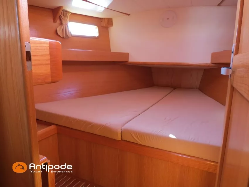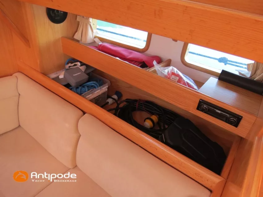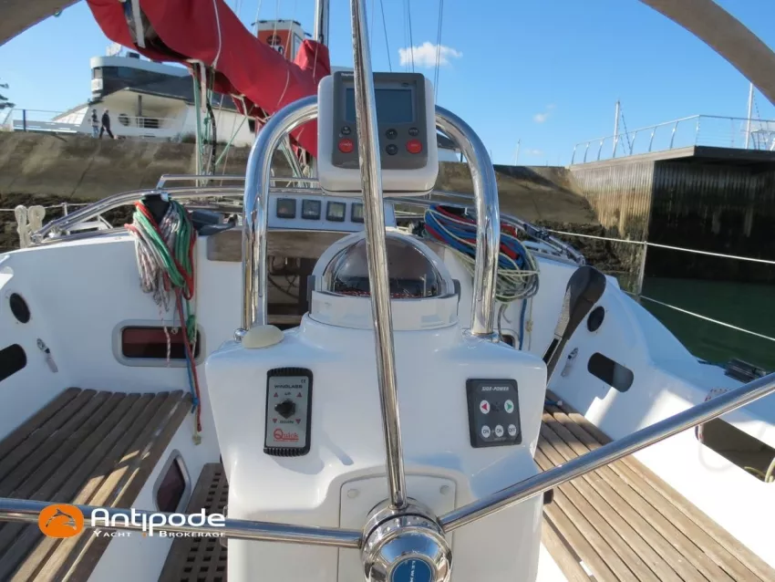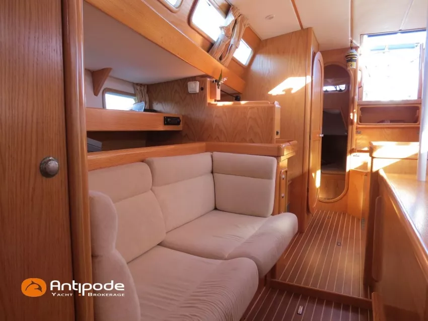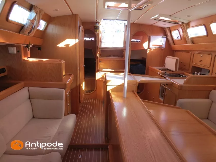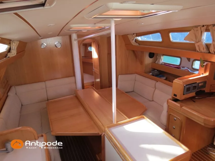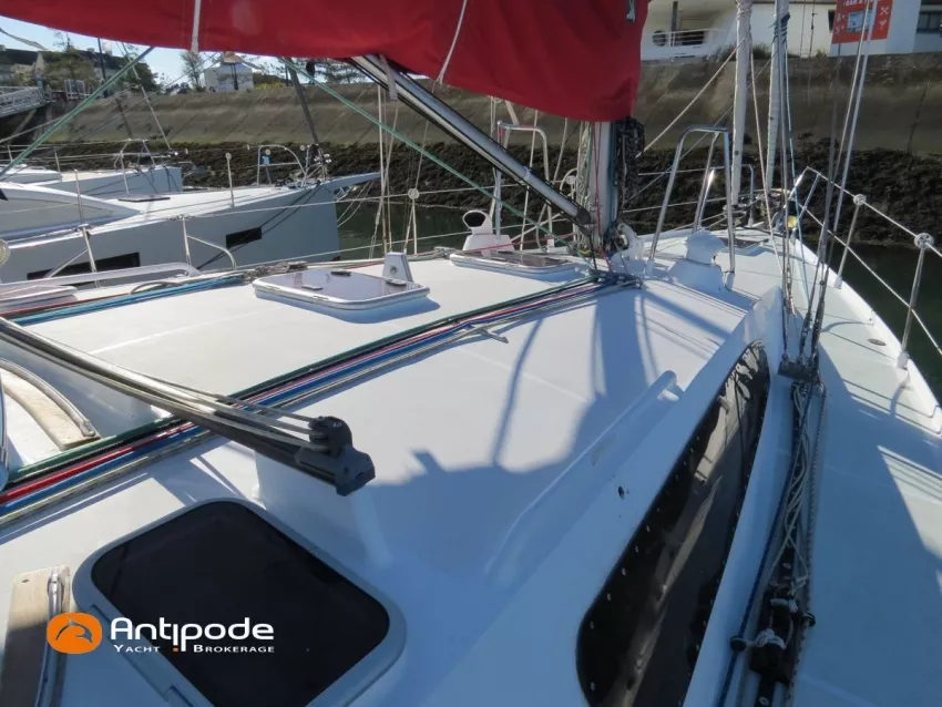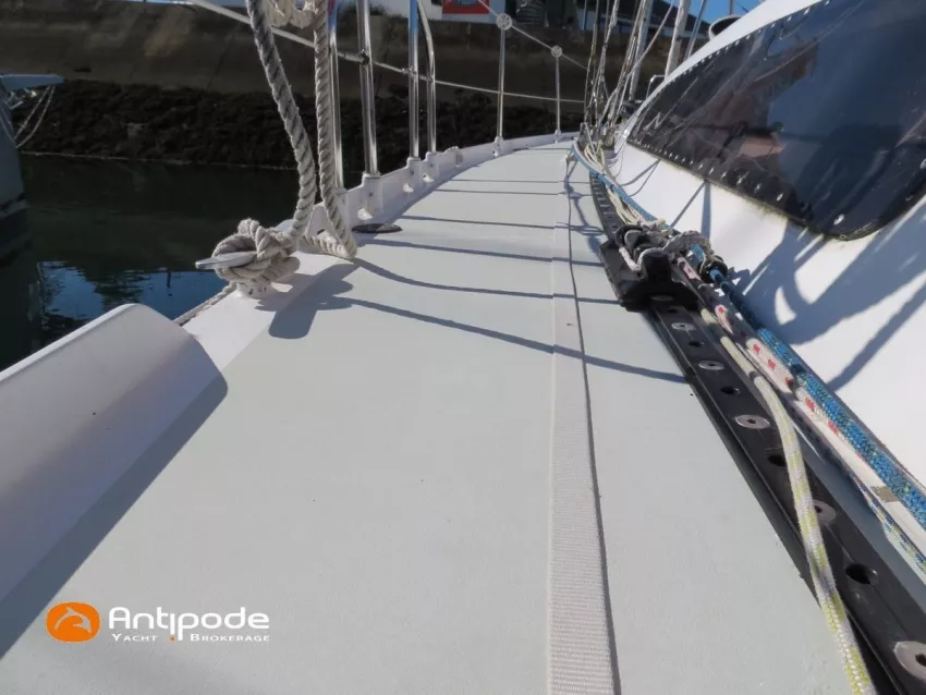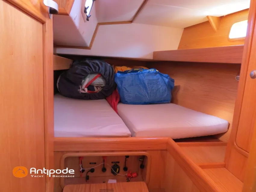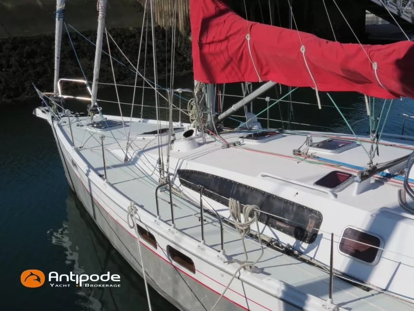 OVNI 395, 2009, VOLVO D2, 55 cv (2300 (estimation) h), Propulseur d'étrave, Coque isolée, Version d'aménagement intérieur 1 cabine avant, 2 cabines arrières, Soute à voile dans le poste avant, 1 cabinet de toilette et douche, Carré convertible en couchette double, 1 winch électrique de manoeuvre sur roof - Lewmar 2022, Bout-dehors amovible pour gennaker, Support inox radeau de survie balcons arrières, Panneau plexi pont réfection étanchéité 2022, Table de cockpit avec abattants bois - 2025, Capote de roof, Bimini top cockpit, Fermeture complète du cockpit utilisable en navigation - 2018, Coussins de cockpit, Guindeau électrique - Lofrans 1000 W, Double commande guindeau au cockpit et baille à mouillage, Portique arrière, Balcons de pieds de mât et marches de mât, Ouvertures latérales dans les filières, Bourrelet aluminium autour de la coque, Régulateur d'allure - Pacific 2025, Grand-voile full batten 3 ris - All Purpose Trilam 2014, Rail de guindant de grand voile + chariots de lattes - Harken, Génois sur enrouleur - All Purpose Trilam 2014, Trinquette sur enrouleur - All Purpose Dacron 2015, Gennaker sur emmagasineur Karver, Pilote automatique in board Raymarine, Télécommande à distance du pilote - Raymarine Smartcontroller, Centrale de navigation Raymarine ST 60, Répétiteurs Raymarine ST 60 cockpit X 4, Répétiteurs Raymarine ST 60 à la table à carte X 2, GPS / lecteur de carte / radar à la table à carte - Raymarine C 80, GPS / lecteur de carte dans le cockpit - Vulcan 7 + Navpod 2022, Cartographie électronique - 2022, GPS - Furuno GP 32, Radar avec radôme sur support de mât, Transpondeur AIS (émetteur récepteur) - Class B, VHF à la table à carte - ICOM 505 ASN DSC, Combiné VHF dans le cockpit - ICOM, VHF portable, System de son - Garmin Fusion 2022, Hauts-parleurs cockpit, Balise de détresse - ACR 2022, Convertisseur 12 V / 220 V - Unitec Unipower 1200 W 2022, Chauffage EBERSPACER à circulation d'eau - Hydronic D5 (révisé 2018), Panneaux solaires - HR 170 Wc 2018, Eolienne - TM 350 GEN 2 / 2022, 2 ème alternateur moteur, Radeau de survie - Plastimo ISO 9650 6 man , Mouillage ancre Spade 20 kg + ancre Spade 25 kg, chaine 60 m, cablot 60 m, Annexe - 3D TENDER Twin Air Dinghy 270 2024, Moteur hors bord - Suzuki 2.5, Visible Grèce. bateau hiverné à terre 9 mois / an depuis 2021, navigations 2 mois. Pour plus d'informations ou pour fixer un rendez-vous de visite, contact : Jérôme Le Joubioux 06 07 45 71 73 - jerome@antipode-yachts.com