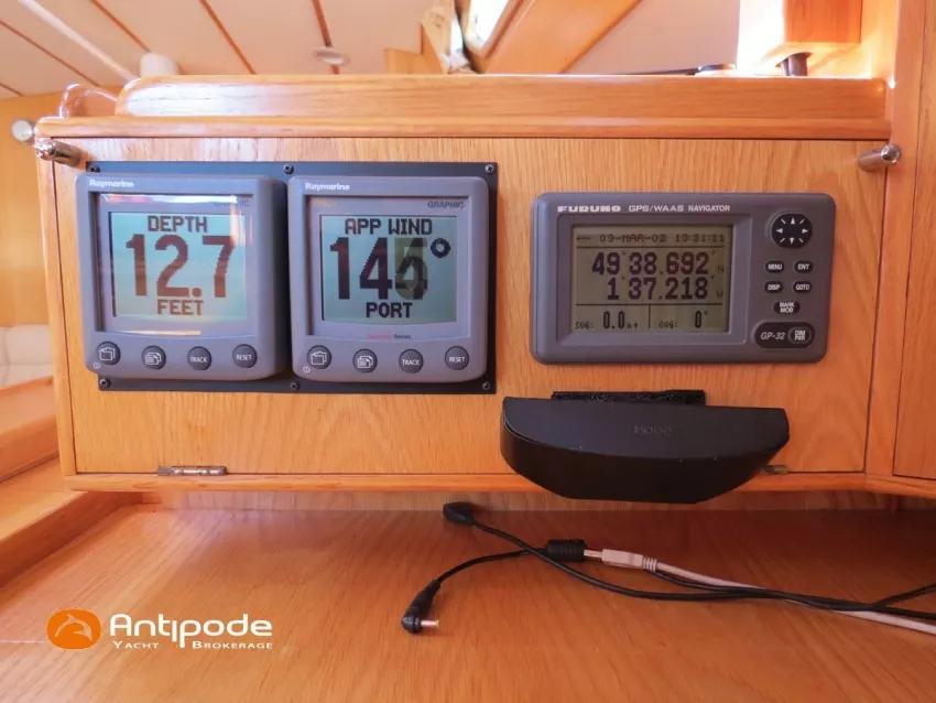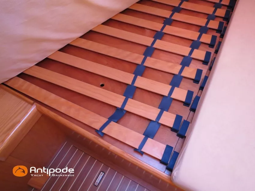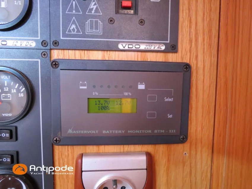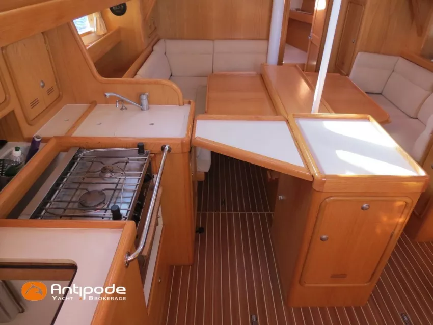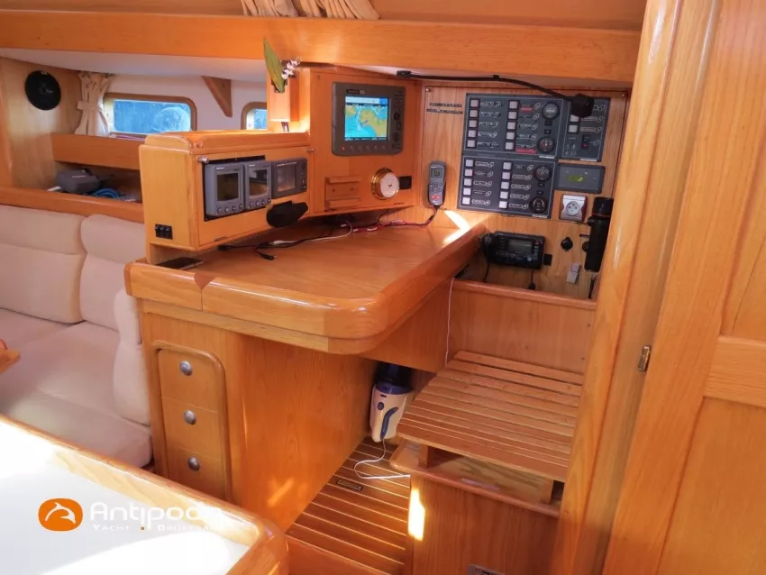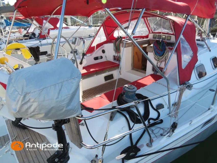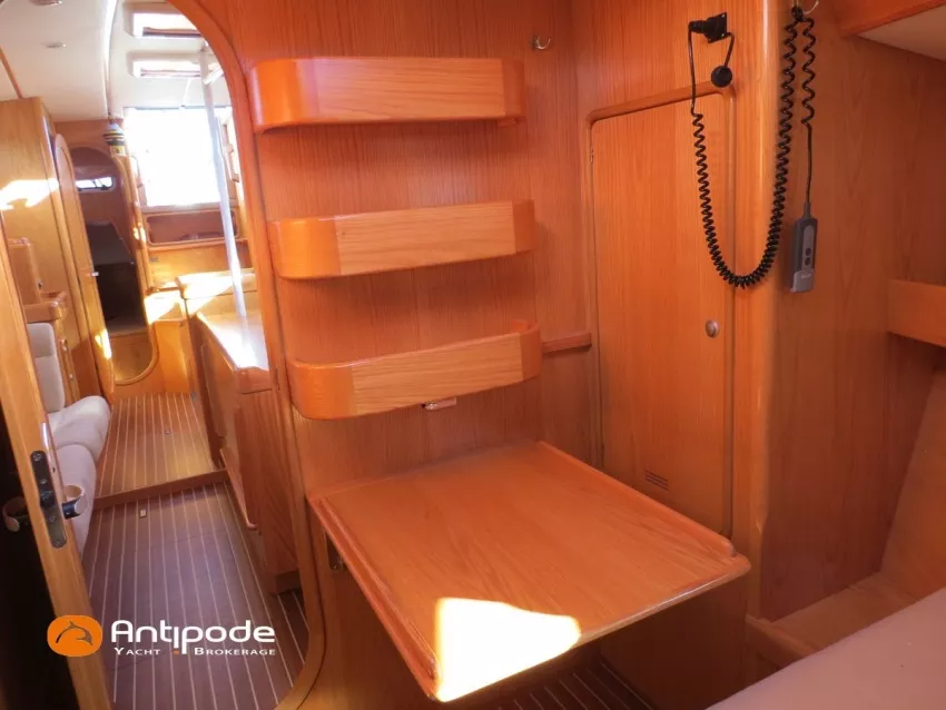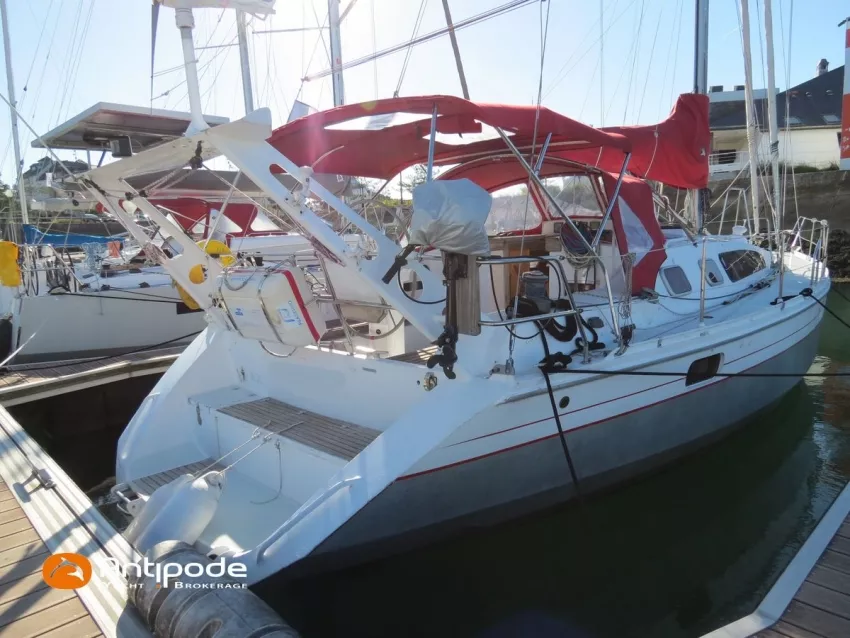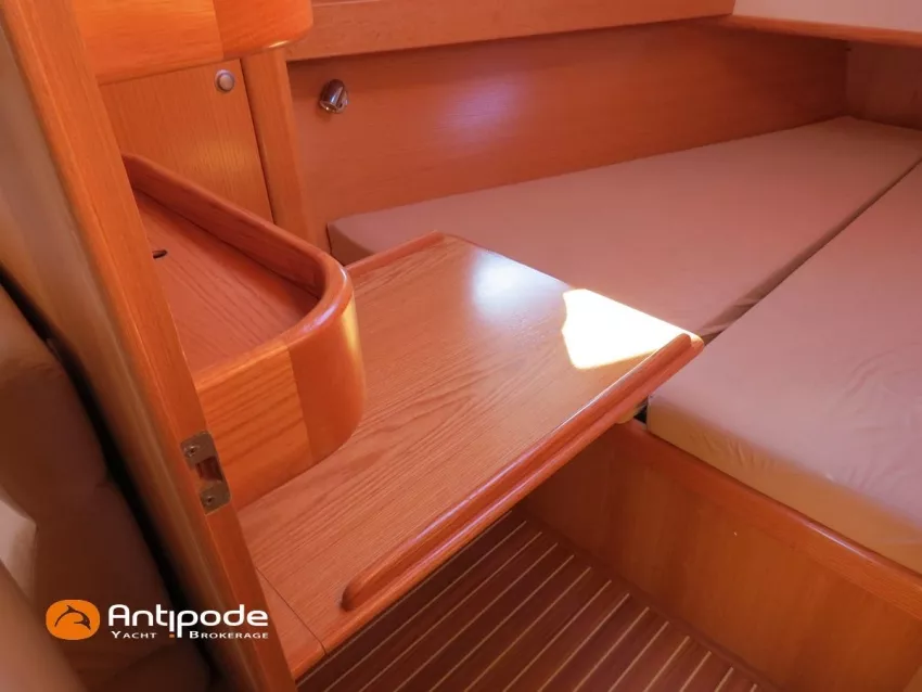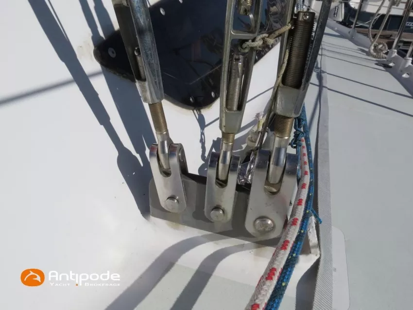 OVNI 395, 2009, VOLVO D2, 55 cv (2300 (estimation) h), Propulseur d'étrave, Coque isolée, Version d'aménagement intérieur 1 cabine avant, 2 cabines arrières, Soute à voile dans le poste avant, 1 cabinet de toilette et douche, Carré convertible en couchette double, 1 winch électrique de manoeuvre sur roof - Lewmar 2022, Bout-dehors amovible pour gennaker, Support inox radeau de survie balcons arrières, Panneau plexi pont réfection étanchéité 2022, Table de cockpit avec abattants bois - 2025, Capote de roof, Bimini top cockpit, Fermeture complète du cockpit utilisable en navigation - 2018, Coussins de cockpit, Guindeau électrique - Lofrans 1000 W, Double commande guindeau au cockpit et baille à mouillage, Portique arrière, Balcons de pieds de mât et marches de mât, Ouvertures latérales dans les filières, Bourrelet aluminium autour de la coque, Régulateur d'allure - Pacific 2025, Grand-voile full batten 3 ris - All Purpose Trilam 2014, Rail de guindant de grand voile + chariots de lattes - Harken, Génois sur enrouleur - All Purpose Trilam 2014, Trinquette sur enrouleur - All Purpose Dacron 2015, Gennaker sur emmagasineur Karver, Pilote automatique in board Raymarine, Télécommande à distance du pilote - Raymarine Smartcontroller, Centrale de navigation Raymarine ST 60, Répétiteurs Raymarine ST 60 cockpit X 4, Répétiteurs Raymarine ST 60 à la table à carte X 2, GPS / lecteur de carte / radar à la table à carte - Raymarine C 80, GPS / lecteur de carte dans le cockpit - Vulcan 7 + Navpod 2022, Cartographie électronique - 2022, GPS - Furuno GP 32, Radar avec radôme sur support de mât, Transpondeur AIS (émetteur récepteur) - Class B, VHF à la table à carte - ICOM 505 ASN DSC, Combiné VHF dans le cockpit - ICOM, VHF portable, System de son - Garmin Fusion 2022, Hauts-parleurs cockpit, Balise de détresse - ACR 2022, Convertisseur 12 V / 220 V - Unitec Unipower 1200 W 2022, Chauffage EBERSPACER à circulation d'eau - Hydronic D5 (révisé 2018), Panneaux solaires - HR 170 Wc 2018, Eolienne - TM 350 GEN 2 / 2022, 2 ème alternateur moteur, Radeau de survie - Plastimo ISO 9650 6 man , Mouillage ancre Spade 20 kg + ancre Spade 25 kg, chaine 60 m, cablot 60 m, Annexe - 3D TENDER Twin Air Dinghy 270 2024, Moteur hors bord - Suzuki 2.5, Visible Grèce. bateau hiverné à terre 9 mois / an depuis 2021, navigations 2 mois. Pour plus d'informations ou pour fixer un rendez-vous de visite, contact : Jérôme Le Joubioux 06 07 45 71 73 - jerome@antipode-yachts.com