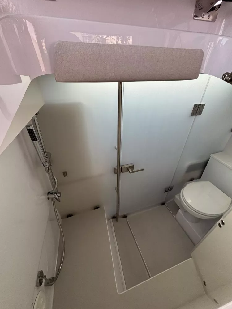 Compartiment toilette séparé avec douche intégrée dans la cabine avant
