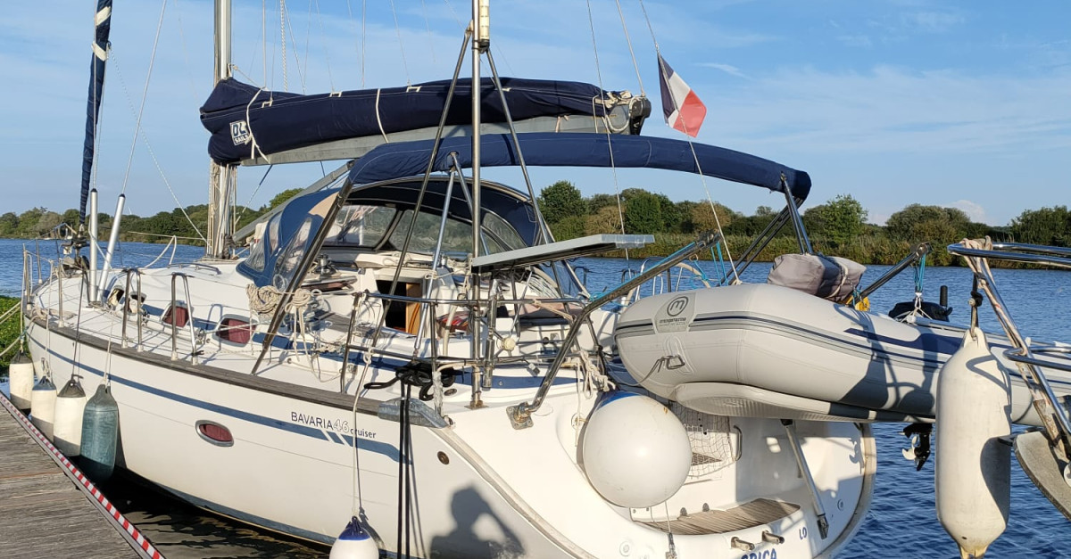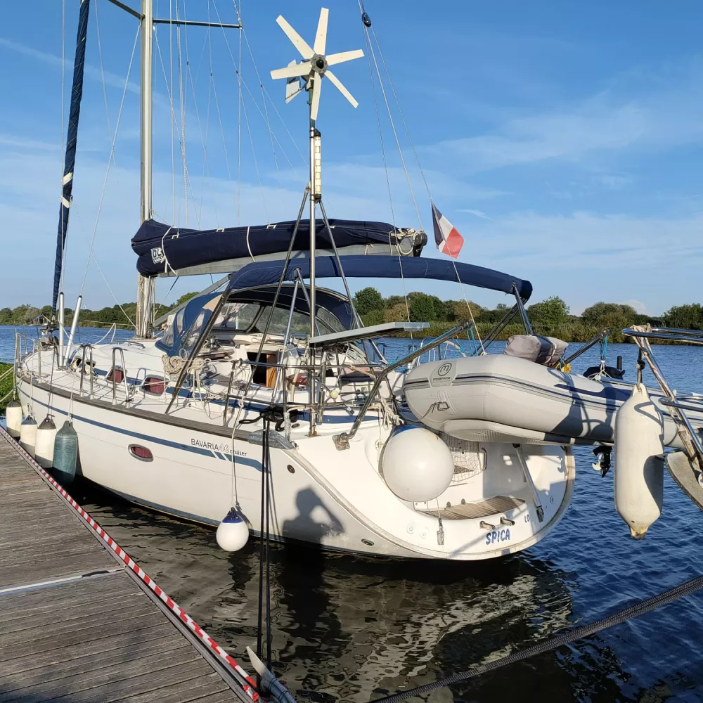 Bavaria 46 Cruiser de 2006 en version 4 cabines, avec une quille plomb, tirant d’eau 2.10 mètres, grand-voile full-batten, trinquette et génois sur enrouleur, spi asymétrique (prévoir à terme le changement de la GV et du génois), moteur Volvo 55 (3650h).