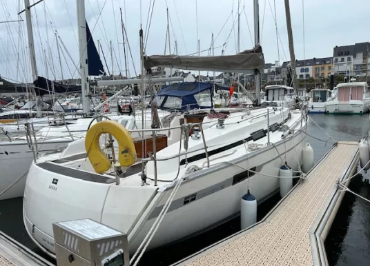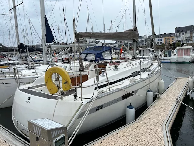 Voilier Bavaria 32 cruiser de 9,99 m par 3,40 m et 1,95 m de tirant d'eau, première main parfaitement entretenu par professionnels. Modèle de 2011 équipement hauturier, bib révisé en 2025, moteur Volvo D1-20 750 heures, joint sail drive remplacé en 2023, gréement dormant remplacé en 2025, grand voile neuve, trinquette sur étais largable, spi asymétrique sur bout dehors selden, spi symétrique avec tangon, génois sur enrouleur. Chauffage webasto. Plateforme de bain sur vérin.