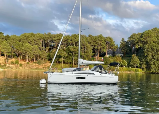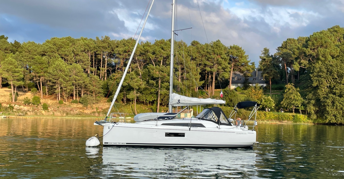 Magnifique Beneteau Oceanis 30.1, voilier moderne, marin et facile à manœuvrer, idéal pour la croisière côtière ou hauturière.
