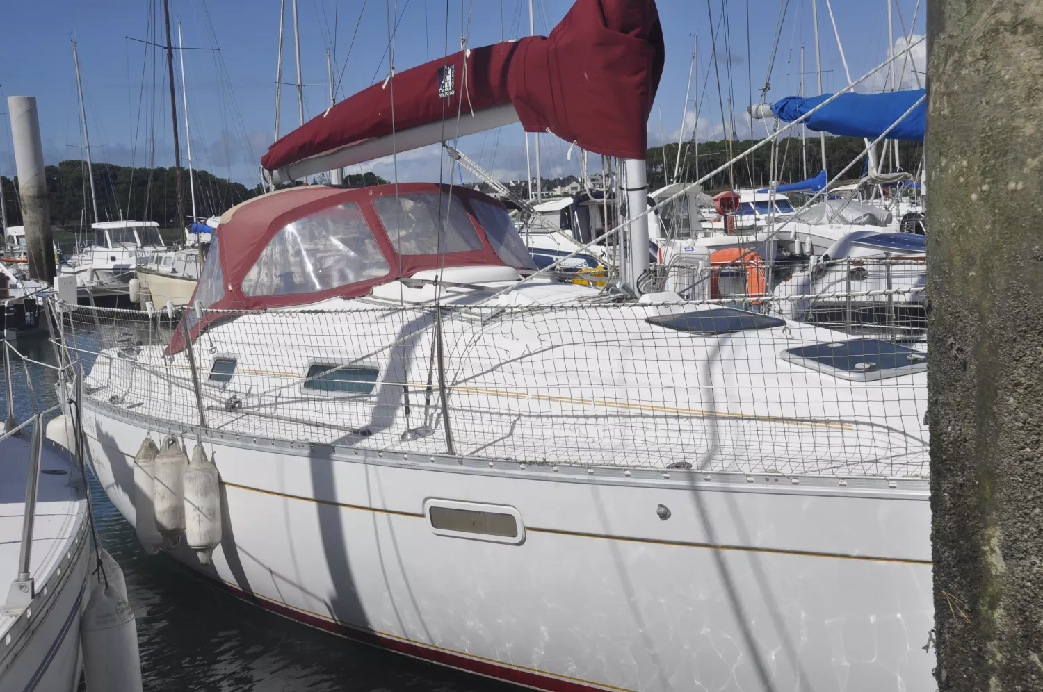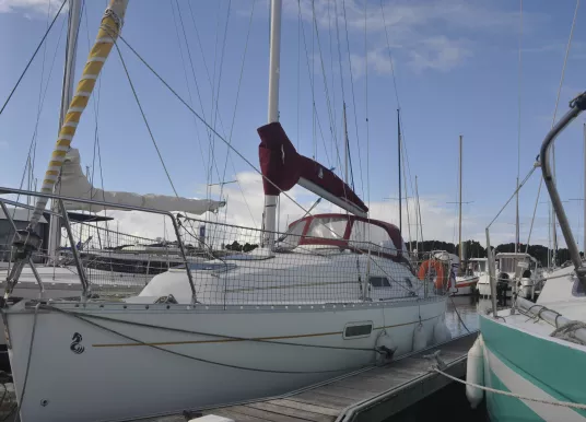Construit en 2001, dernière année de la série, le bateau a très peu navigué et n’a jamais été loué. Entretenu régulièrement et suivi en chantier, il a été mis au sec tous les hivers, Il est en très bon état.