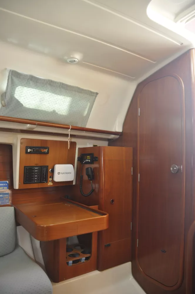 coin navigateur avec table à carte, VHF, GPS, radio lecteur CD plus 2 HP, chargeur de batterie 8 Amp/h, alimentation 220V avec 2 prises 220V.
