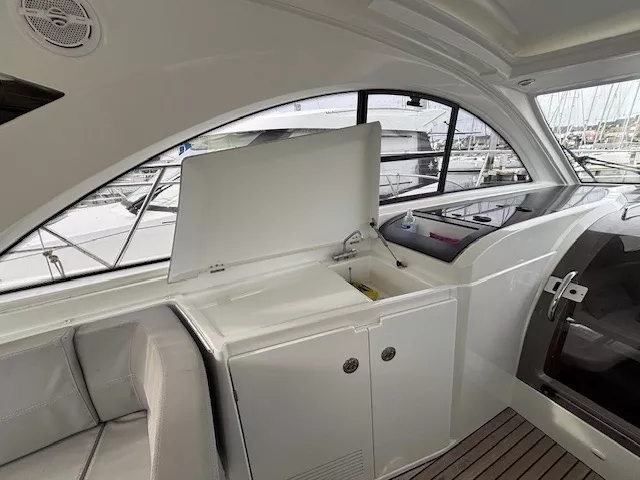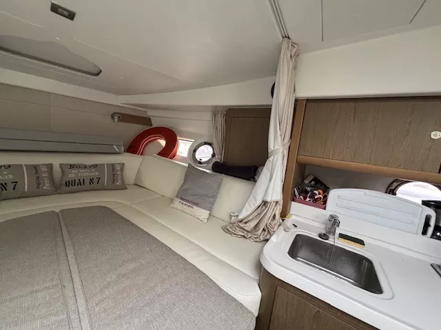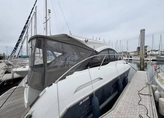 vends très belle vedette, bateau bien entretenu toutes factures à l'appui, révision complète des 2 moteurs en aout 2025,changement des courroies de distribution et des soufflets, 2 Volvo 220cv , VHF, AIS , joystick( très pratique pour les manoeuvres) ,toit ouvrant, taud de camping complet .
