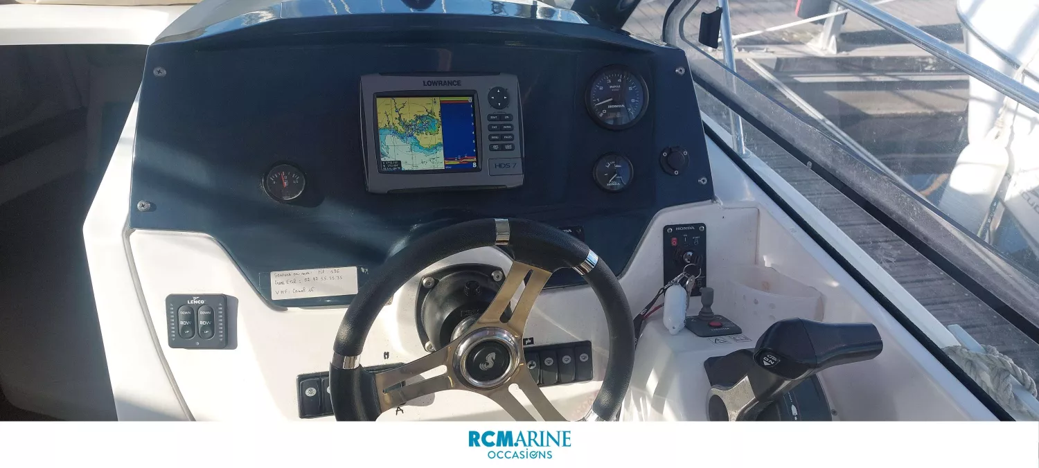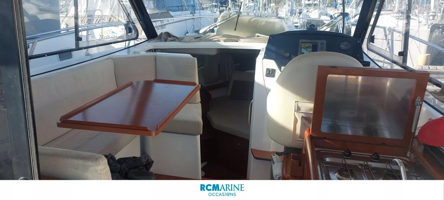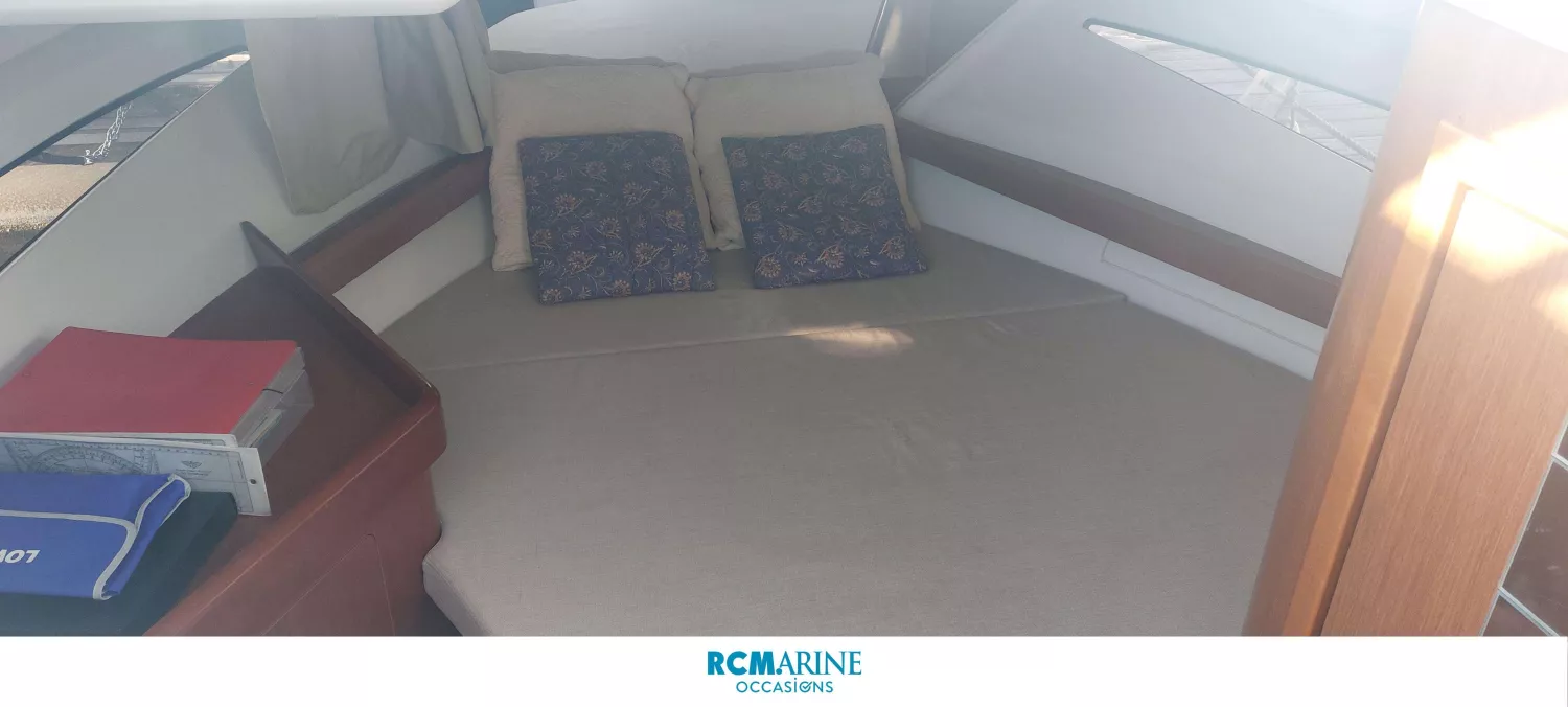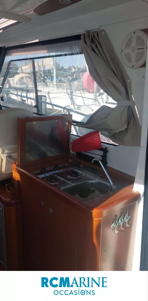 Equipement complet : Gps/Sondeur lowrance, guindeau électrique, cuisine 2 feux gaz, frigo, plateforme arrière, 2 panneau ouvrant dans timonerie, 1 compartiment toilette avec wc marin, coussins de cockpit, table de cockpit bois.