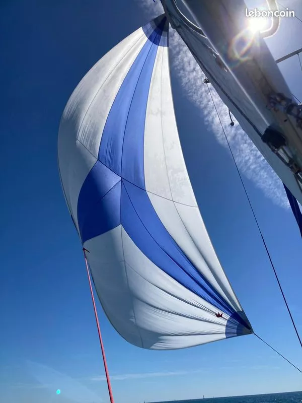 Génois sur enrouleur et GV ° lazy jacks en bon état - Spi symétrique + tangon et gennaker OK