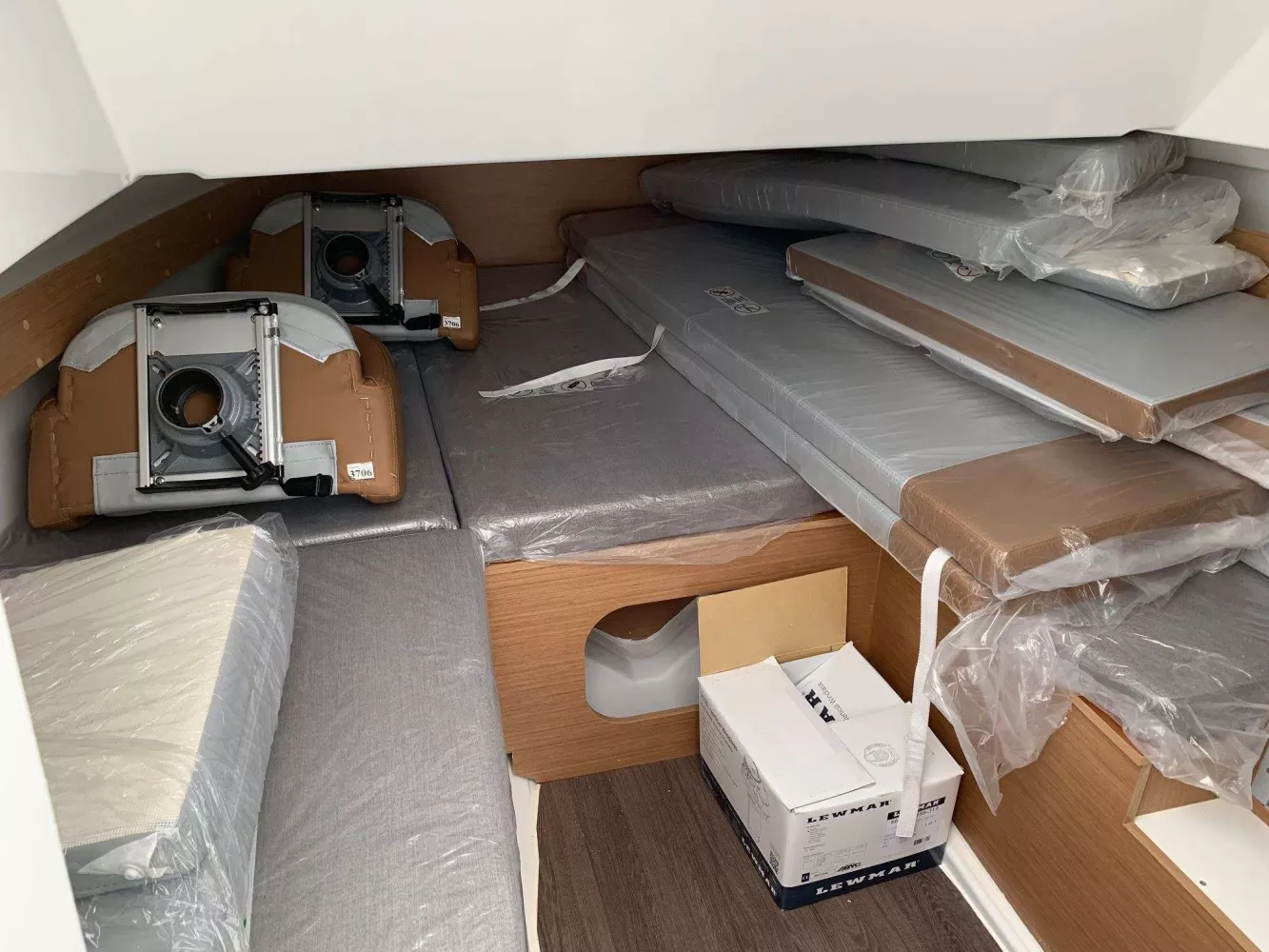 Version sellerie elegance, Guindeau électrique, finition confort, pack éléctronique, Mât de ski, équipet dans cabine, matelas dans cabine.