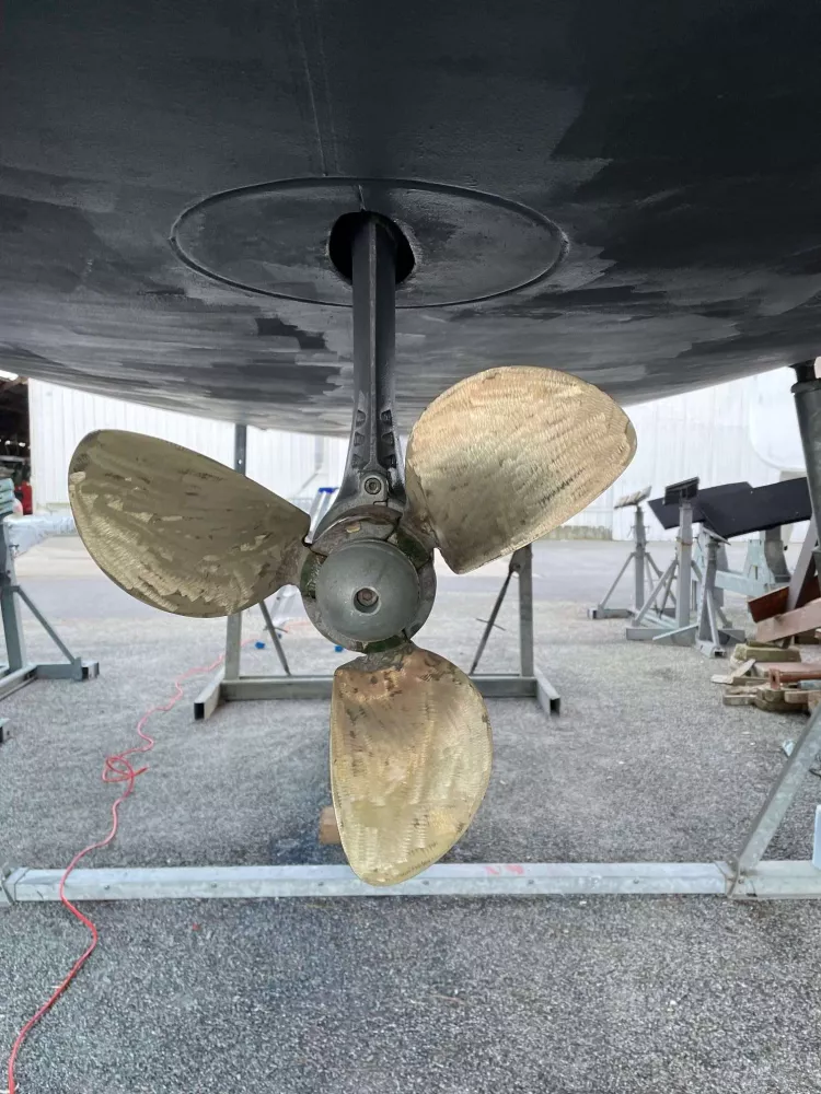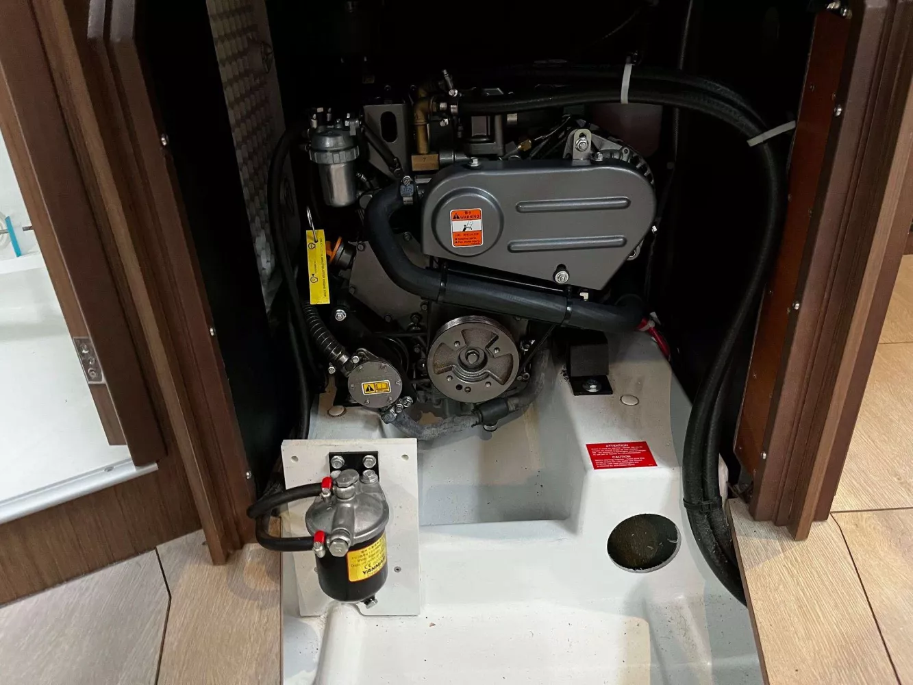 Motorisation YANMAR 29 CV Saildrive (320 heures environ) avec hélice tripales repliables.