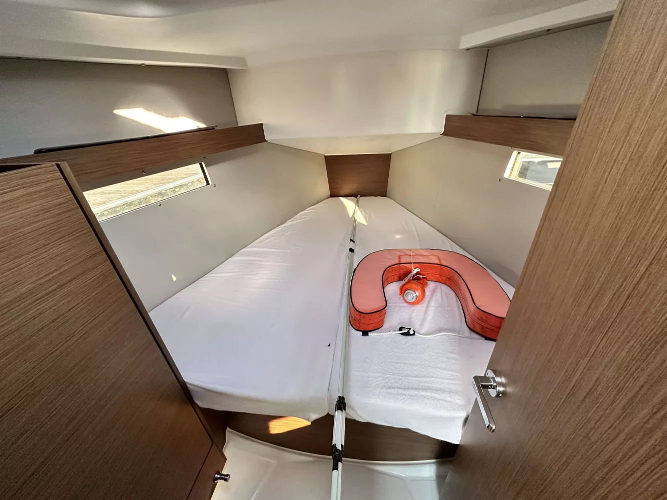 Finition confort, pack FIRST LINE, Pack offshore B&G, guindeau Electrique 1000 W + commande, kit mouillage complet, capote de roof, Bimini de cockpit, support moteur hord-bord, table de cockpit Luxe Polyester-bois, ouverture de coupee barbord et tribord, propulseur d'étrave, réservoir d'eau douce supplémentaire, chauffage fuel à air pulsé, marche de descente en bois, capitonnages macadamia, hélice 3 pales reprilables, Spi asymétrique avec chaussette, code 0 sur emmagasineur mylar Taffetas, voile performance, housse de table de cockpit luxe, housse de barre à roue, AIS 500 B&G, armement de sécurité semi hauturier voile, radeau conteneur 6 places, annexe Twin air 230 3D tender, Moteur témo 450.