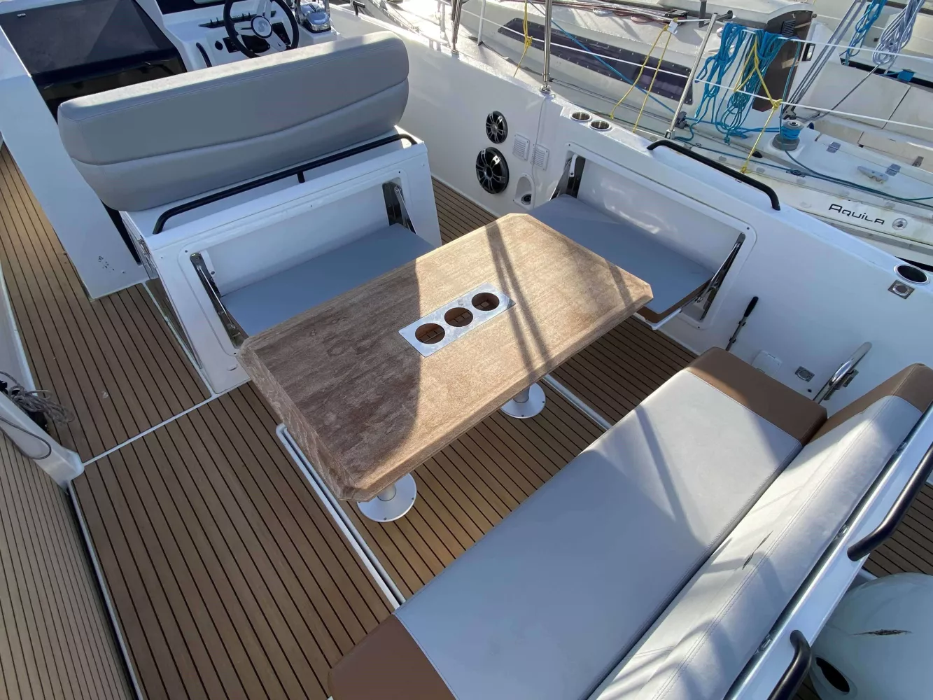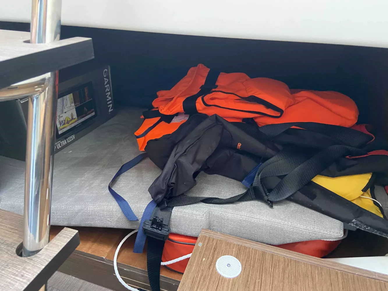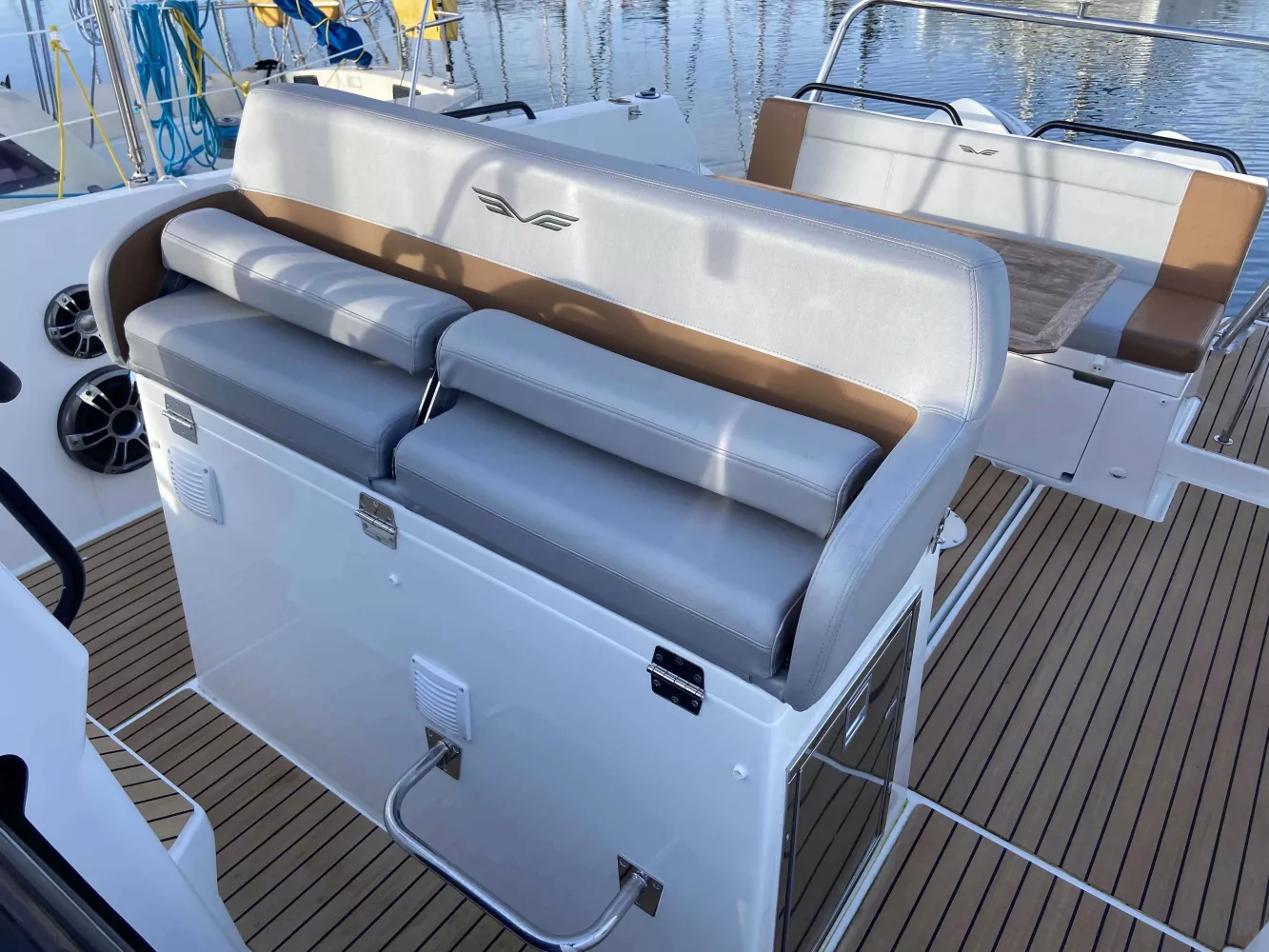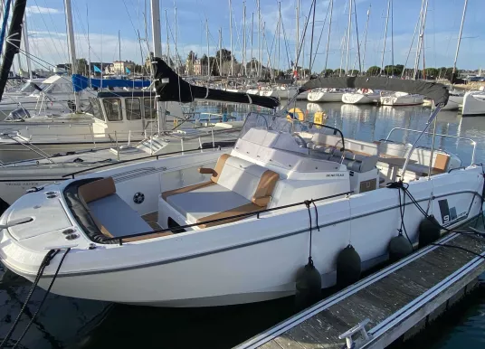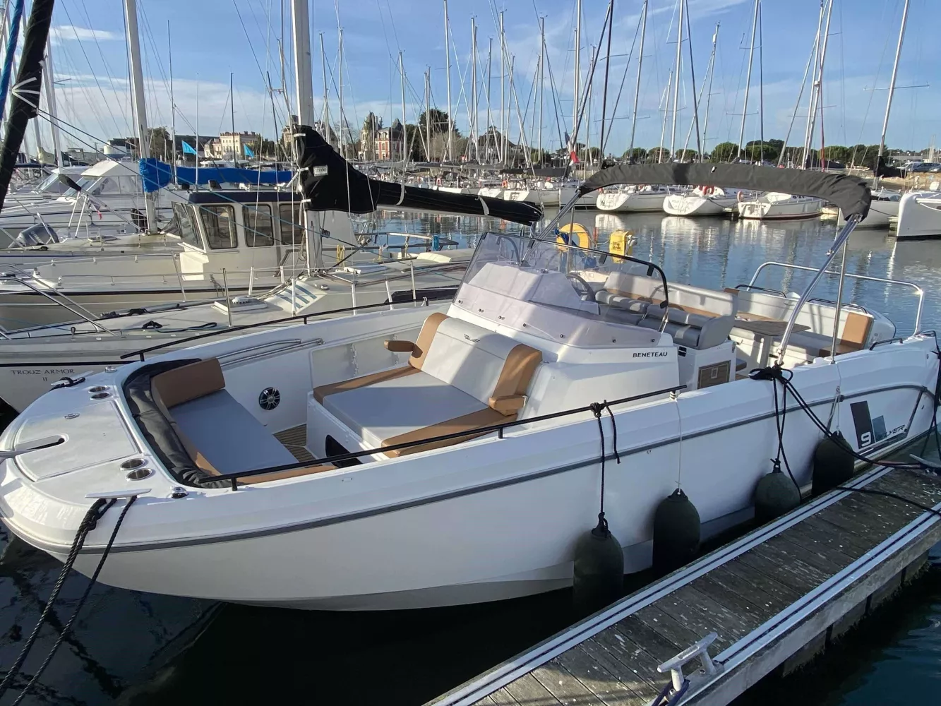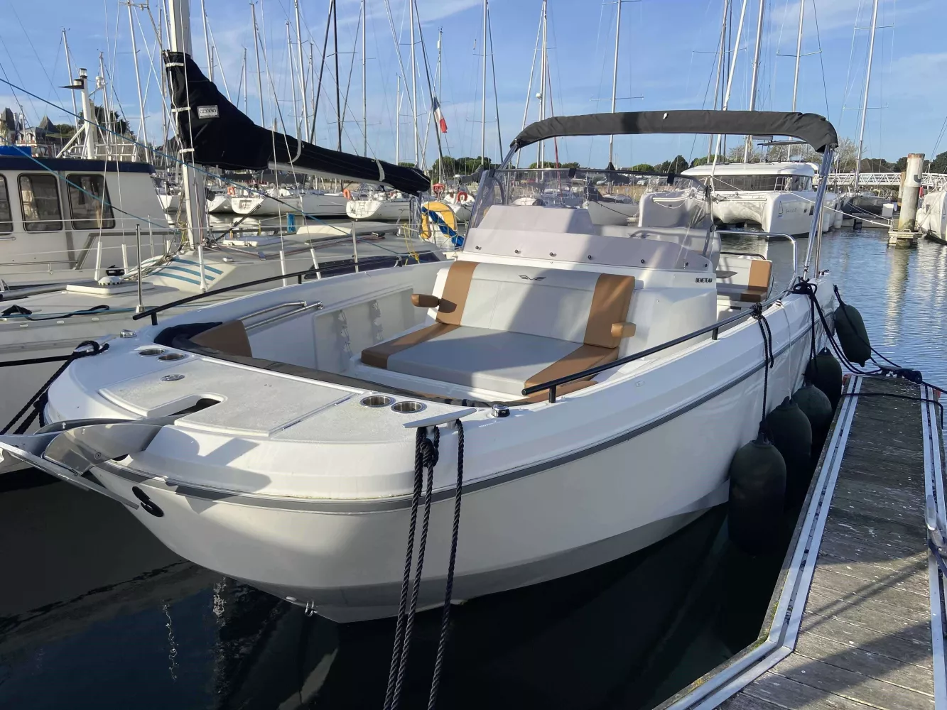 Equipement: Version sellerie Elegance et balcons noirs, Finition confort (Incluant Guindeau électrique, plateformes de bain rapportées, chauffe eau 25L, circuit électrique avec prise de quai et chargeur, Rachaud gaz extérieur, Réfrigérateur 49L dans le cockpit), GPS Sondeur GARMIN Echomap 122 Ultra avec sonde et cartographie, Pack sound Upgraded avec Subwoofer 450W, 4 enceintes signature Plus Chrome 230W et LED bleues, Ampli 1600 W et lecteur Fusion, Bimini arrière de cockpit Graphite, Canopy avant Graphie, Ensemble de housses de protection extérieures Graphite (table de cockpit - console - banquette arrière - Banquette avant - console et leaning post), Flexiteek intégral pont et plateformes de bain, Kit mouillage complet, banquette de cockpit leaning post et latérales repliables, Mât de ski, Propulseur d'étrave, Eclairage de courtoisie LED, Projecteurs sous-marins, matelas cabine avant et Mid-cabine, WC marin et réserve eaux noires, réservoirs carburant 2*280L, Armement de sécurité côtier 8 personnes, Antifouling noir.