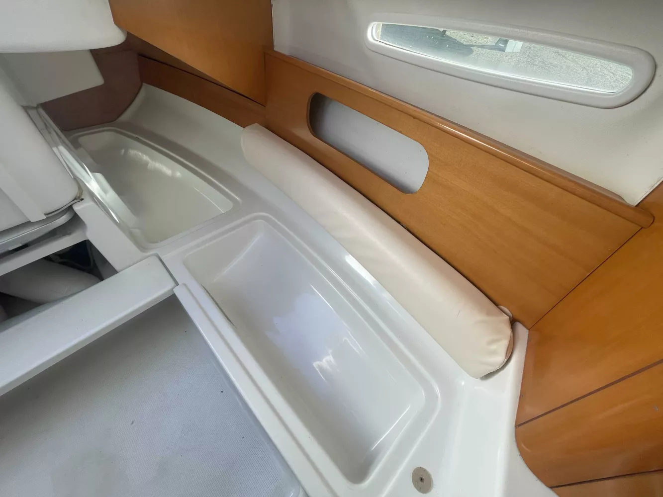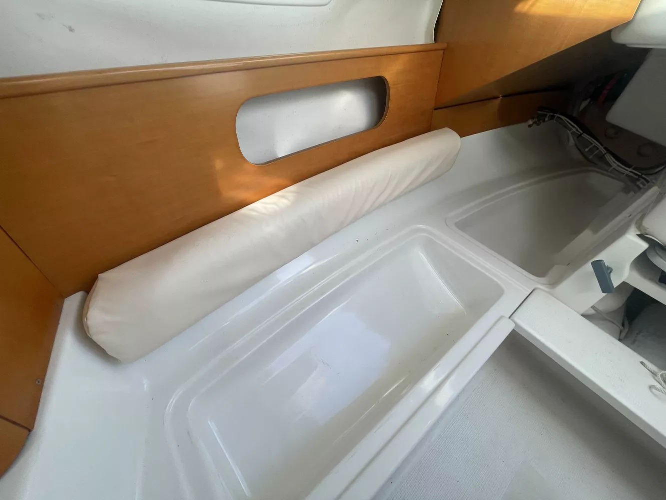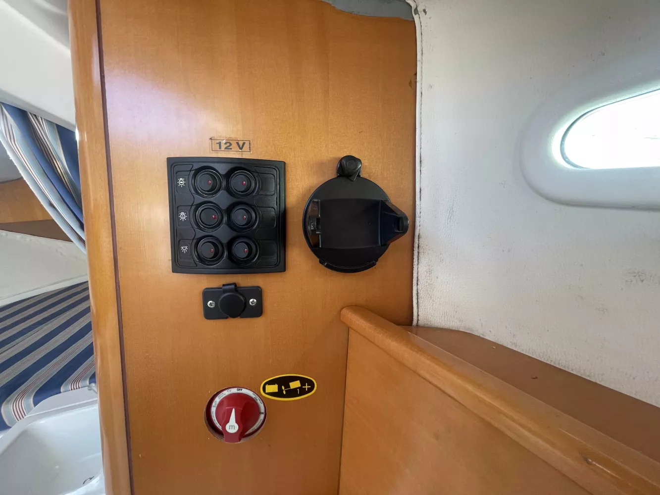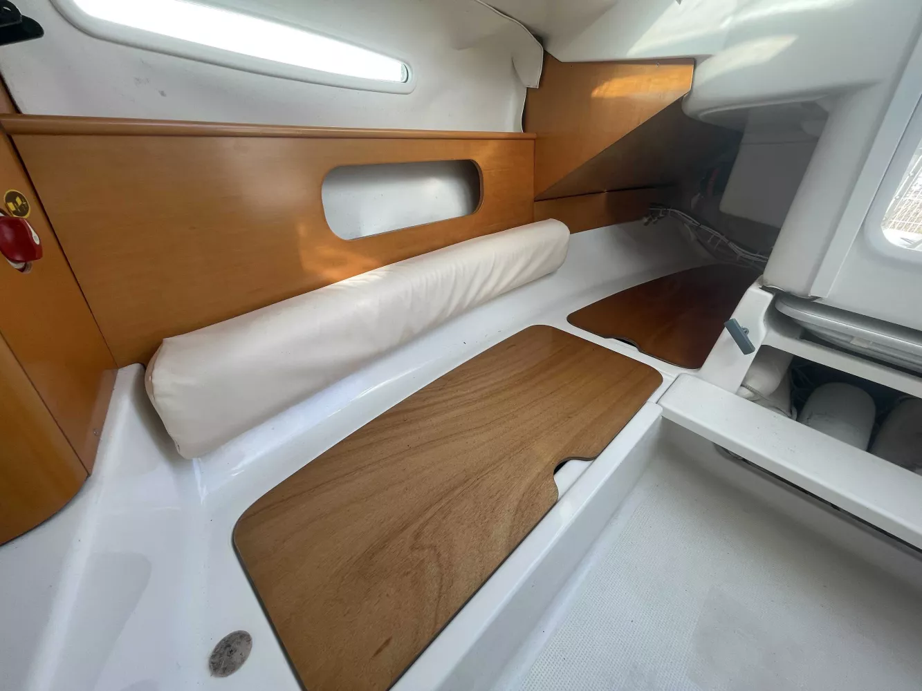 *Intérieur : 1 cabine, 4 couchages, 1 réchaud à gaz, 1 évier avec eau douce, nombreux rangements, table repliable, rideaux intérieurs, hublot ouvrant de cabine, prise 12V.