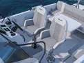 Le Flyer 8 SUNdeck Pilot Edition se distingue par sa coque gris perle, ses balcons noirs, son T-Top noir avec décorations exclusives et ses lignes tendues qui renforcent son allure sportive. Les feux sous-marins, l’éclairage LED dans le cockpit et la sellerie Linetex Glacier + Chalk signent une esthétique moderne et élégante.