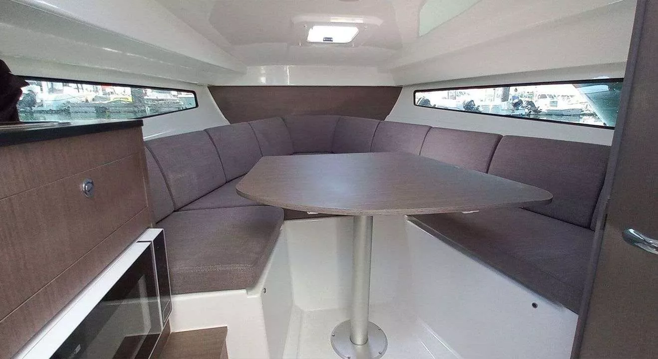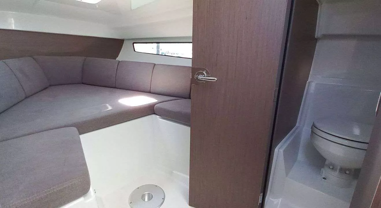 Le Smart Walkaround bâbord permet une circulation fluide et sécurisée vers l’avant du bateau. La plage avant accueille un bain de soleil spacieux à dossiers inclinables, parfait pour la détente au mouillage.