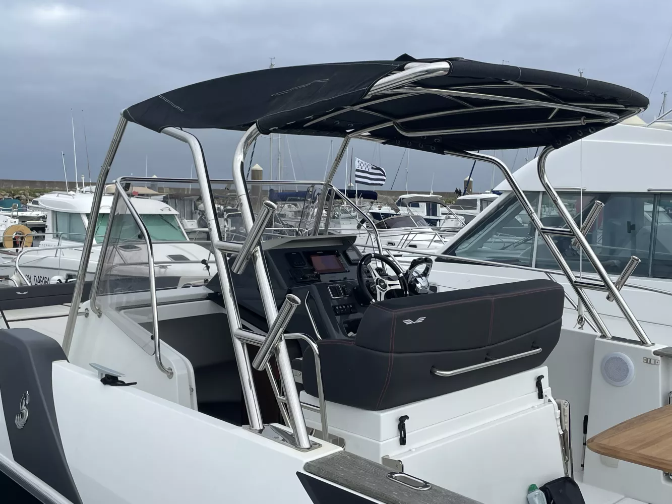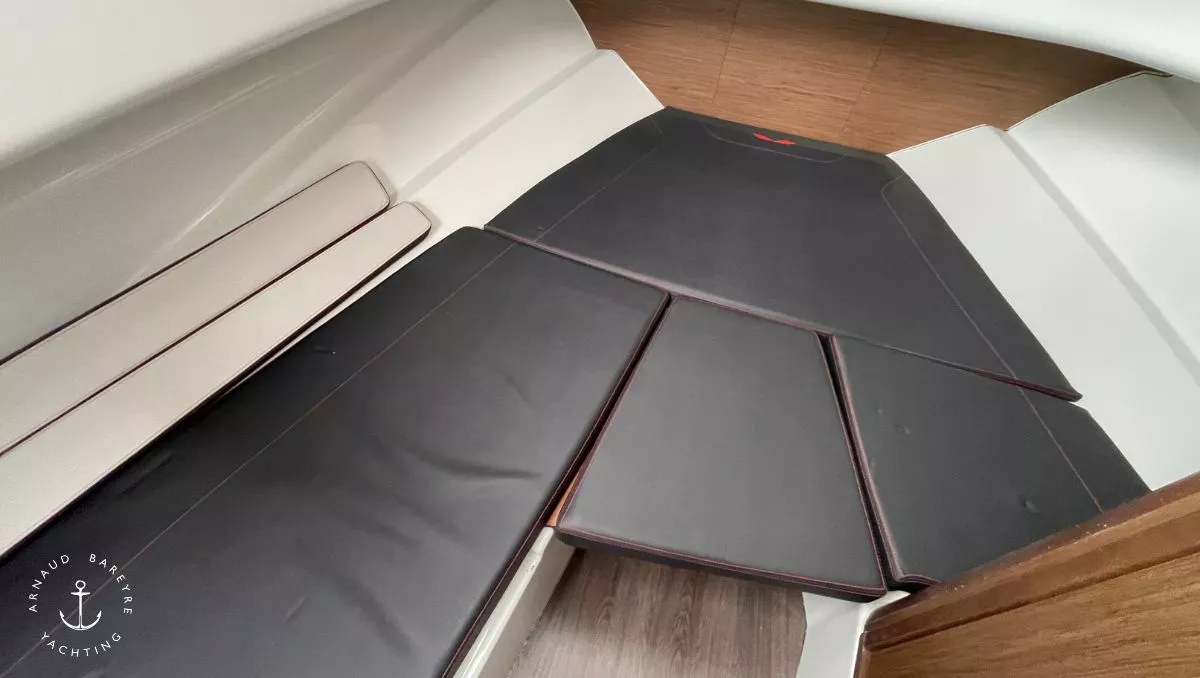 1 banquette de cockpit rabattable + 2 banquettes latérales avec sellerie PVC