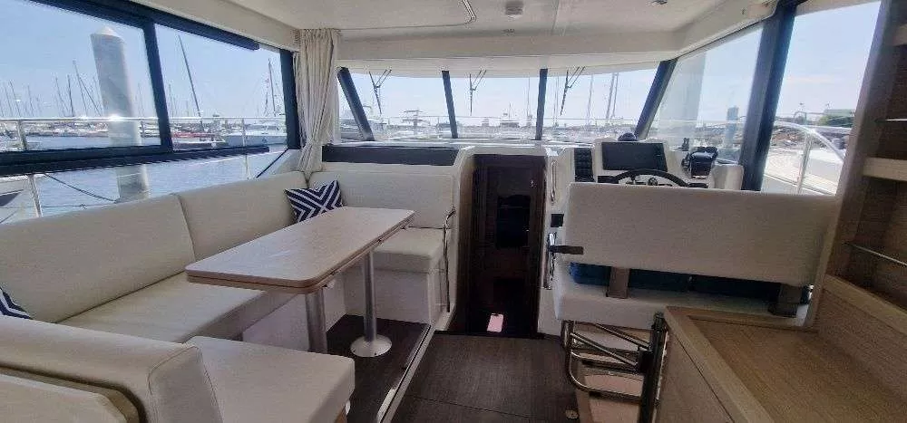 Propulsé par deux moteurs Yanmar de 320 CV, il offre une navigation souple et sécurisante, idéale pour les croisières au long cours.