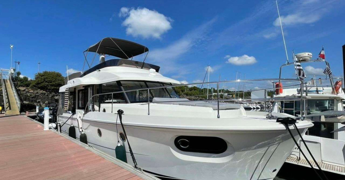Ce modèle se distingue également par son carré lumineux baigné de lumière naturelle grâce aux larges vitrages, sa timonerie ergonomique avec une vue à 360°, et ses trois cabines offrant un confort rare dans cette catégorie. Chaque détail a été pensé pour faciliter la vie à bord : grands espaces de rangement, cuisine en L parfaitement intégrée, cockpit sécurisé, passerelle de plain-pied, et plateforme arrière accueillante.