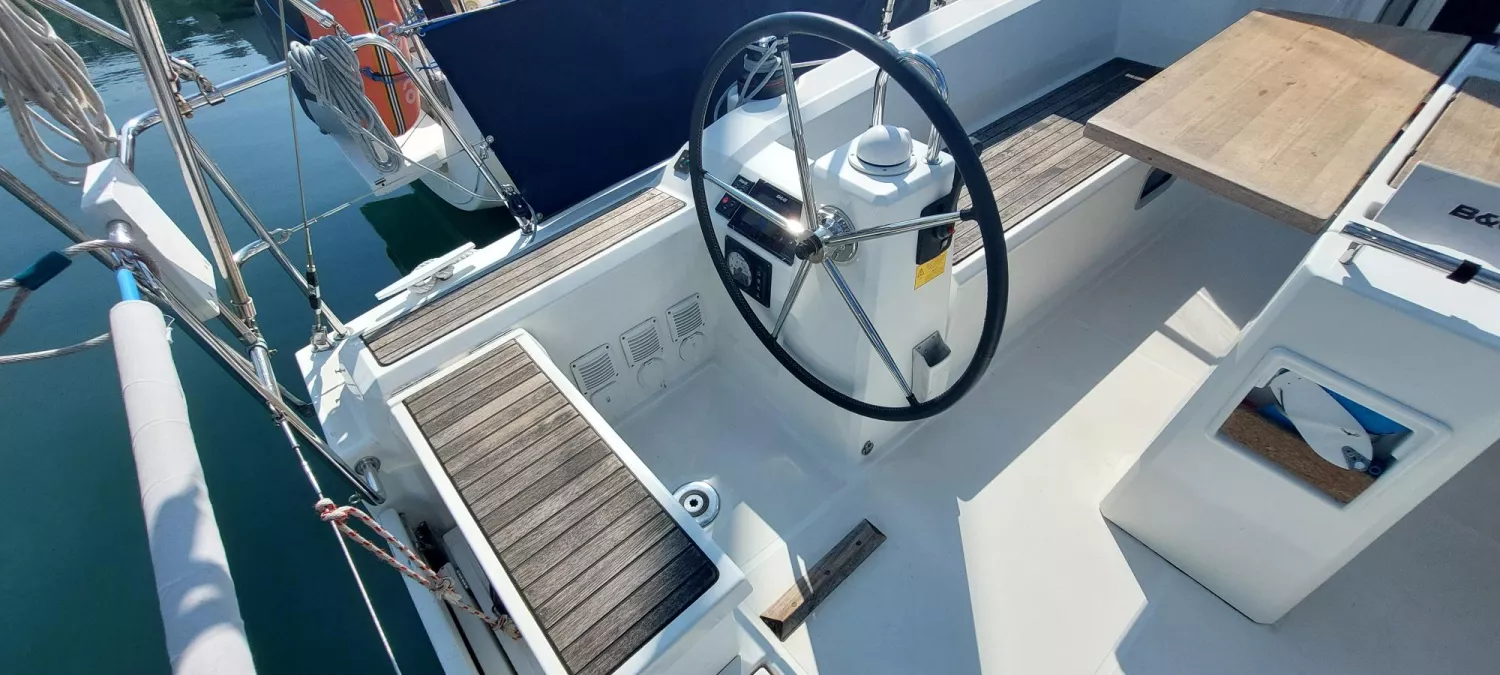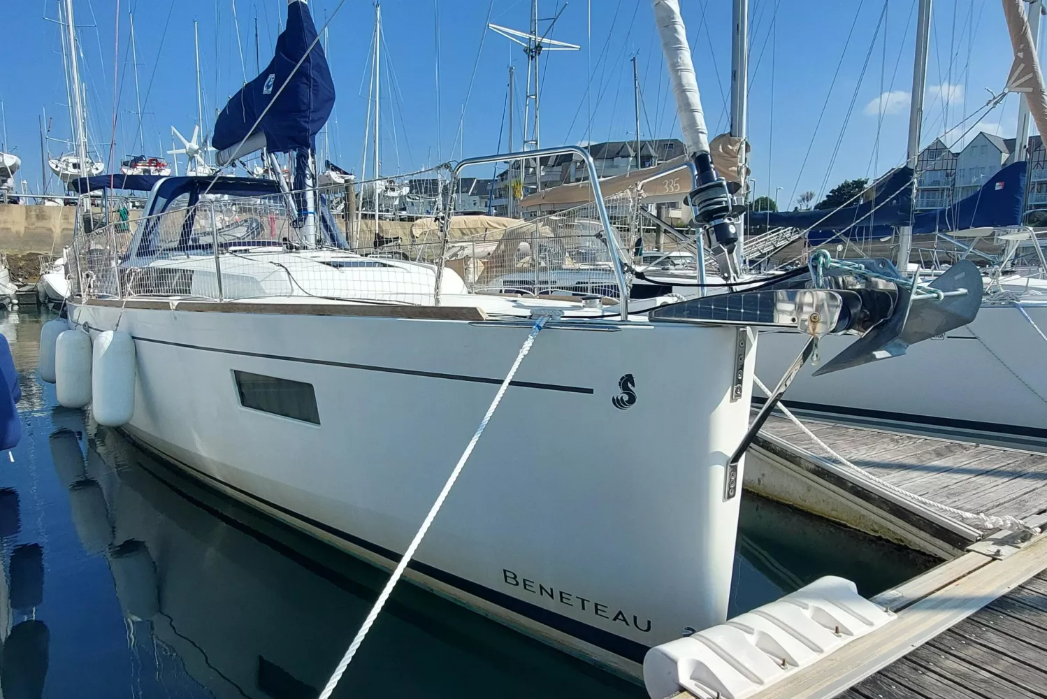 Le bateau est sur son Berre fourni. Il est équipé d'un cabriolet et d'un bain de soleil à l'avant.