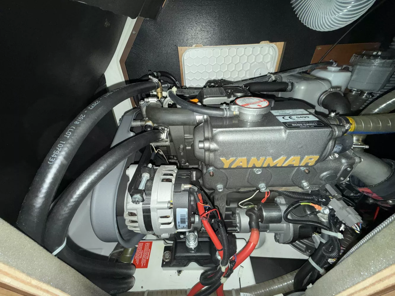 Motorisation YANMAR 40 CV Saildrive (500 heures environ) avec hélice tripales repliables.