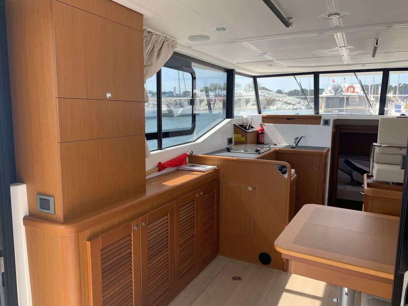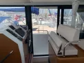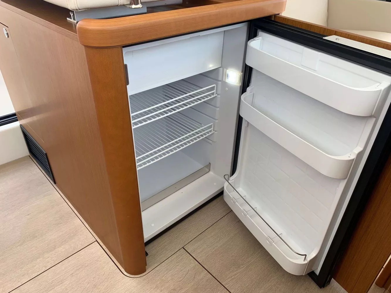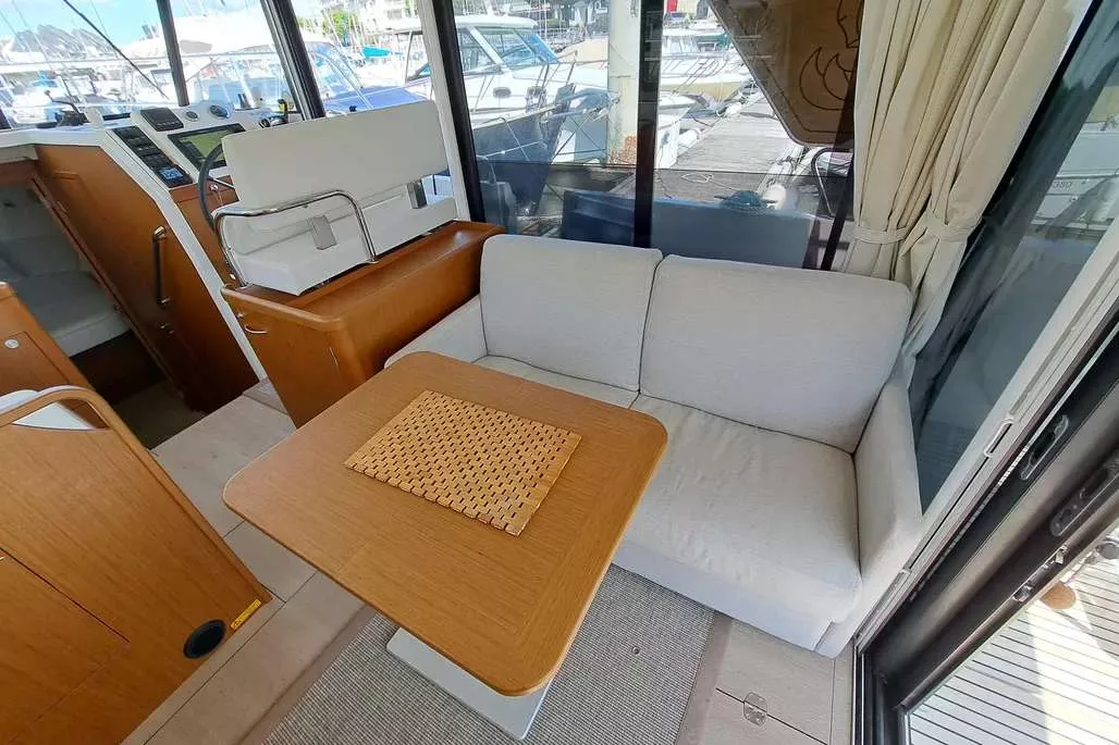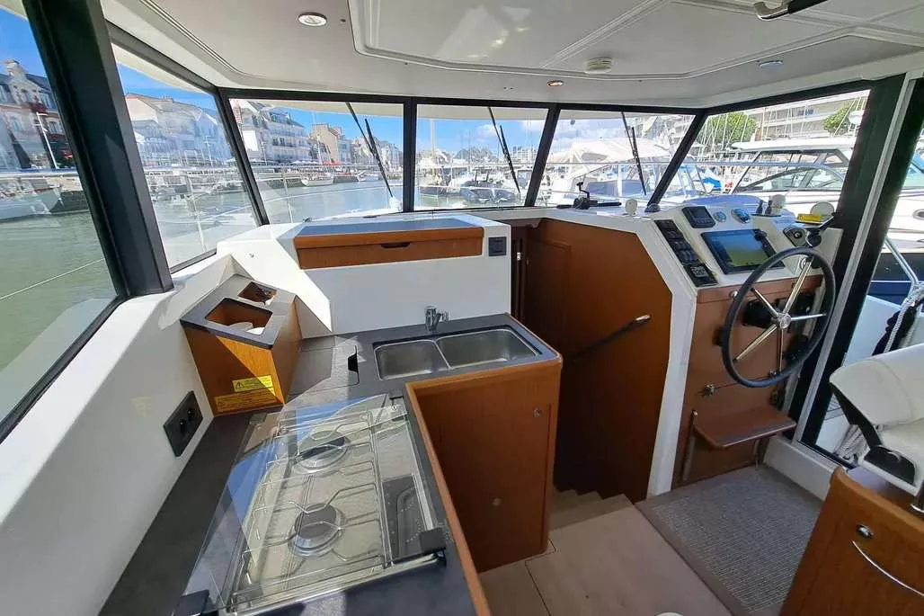 Equipement: Coque blanche, Boiseries intérieures New Teck avec Portes persiennes, Selleries intérieures et extérieures Marlin Brilliant White, Finition Comfort (incluant Guindeau électrique 1000W, Pompe de lavage de pont, Convertisseur 12-200V 700VA, VHF Double Poste AIS, porte gobelets, Ensemble de housse de flybridge, Prise eau douce de quai et tiroir réfrigéré au fly), Pack Electronique Raymarine avec Ecran 12 pouces au fly et en timonerie et Pilote automatique double poste, Pack entertainement cabine avant et carré (pré-dispos TV et Fusion Apollo 670), Kit mouillage complet, 2 banquettes de cockpit repliables, Propulseurs de poupe et d'étrave, Projecteur de pont, Chauffage Fuel air pulsé, Portes Persiennes New Teck, Batterie service AGM Supplémentaire, Rideau de séparation carré-cuisine, Zipwake autotrim system, Moustiquaires hublots et portes, Passavant tribord et fond de cockpit bois massif.