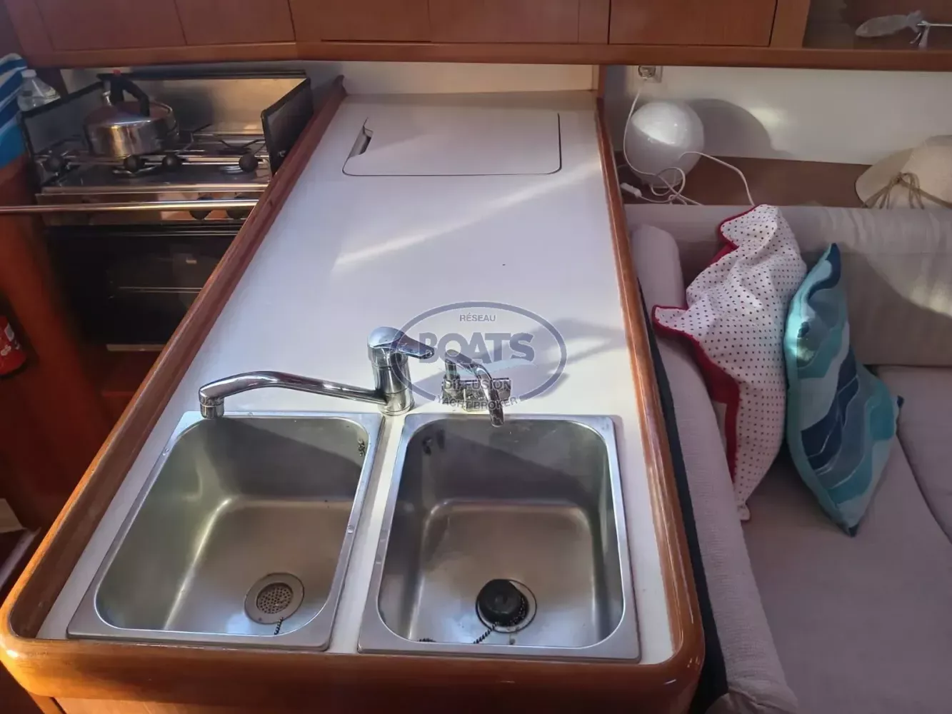 L'intérieur est b ien conservé, on constate la qualité de finition de la marque de bénéteau.