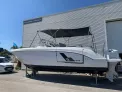 Equipement: Version sellerie Elegance et balcons noirs, Finition confort (Incluant Guindeau électrique, plateformes de bain rapportées, chauffe eau 25L, circuit électrique avec prise de quai et chargeur, Réchaud gaz extérieur, Réfrigérateur 49L dans le cockpit), GPS Sondeur GARMIN Upgraded 1223 xsv avec sonde et cartographie, VHF Garmin 215 AIS, Pack sound Fusion, Bimini arrière de cockpit Graphite, Canopy avant Graphite et Bain de soleil avant, Ensemble de housses de protection extérieures Graphite (table de cockpit - console - banquette arrière - Banquette avant - console et leaning post), Kit mouillage complet, banquette de cockpit leaning post et latérale repliables, Mât de ski, Propulseur d'étrave, Eclairage de courtoisie LED, matelas cabine avant et Mid-cabine, WC marin et réserve eaux noires, Flaps Auto Zipwake 750, Armement de sécurité côtier 8 personnes, Antifouling noir.
