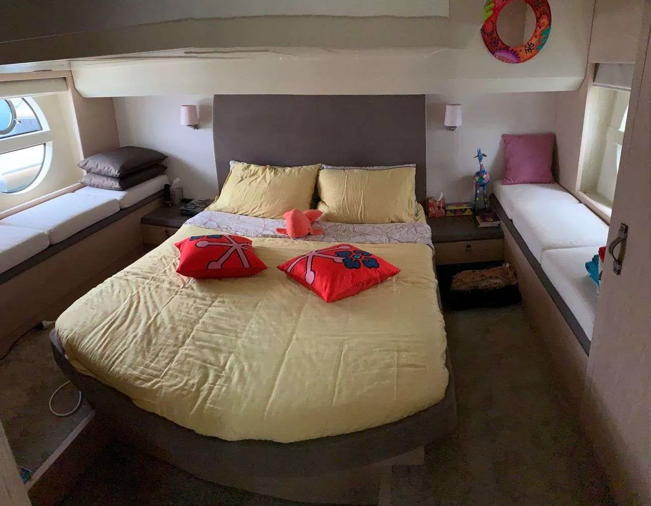 Ses 3 cabines spacieuses (2 doubles et 1 twin) et 2 salles d’eau raffinées offrent à chaque passager un espace intime, lumineux et parfaitement aménagé.