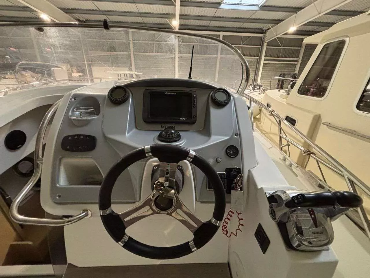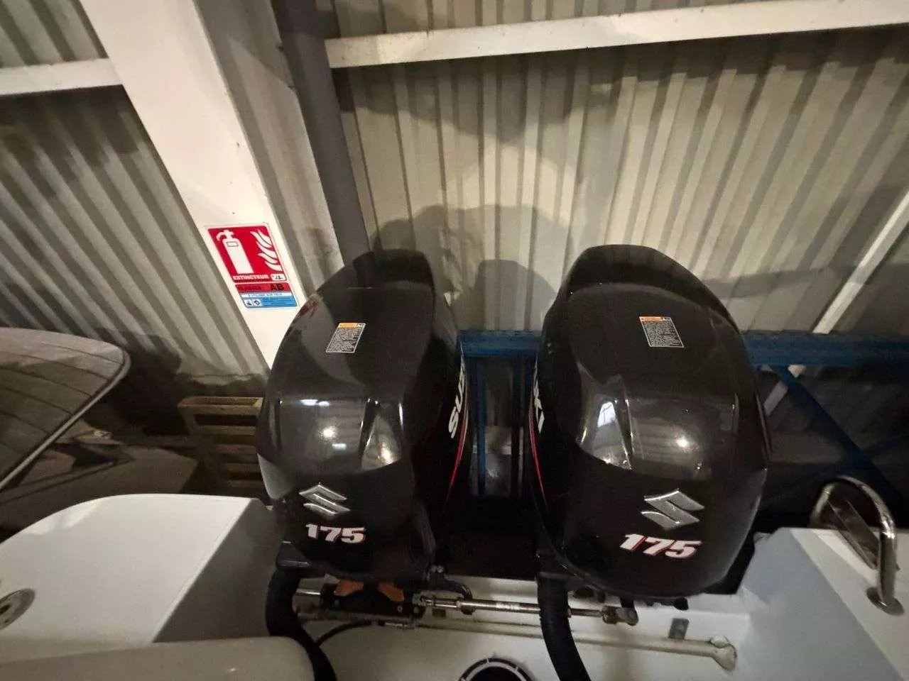 Équipé de 2 moteurs SUZUKI de 175 CV chacun (Total 350 CV), ce bateau affiche seulement 210 heures de navigation. Cette bi-motorisation garantit une sécurité accrue et une puissance parfaitement adaptée à la carène Air Step®. La direction est hydraulique pour une précision de pilotage optimale.