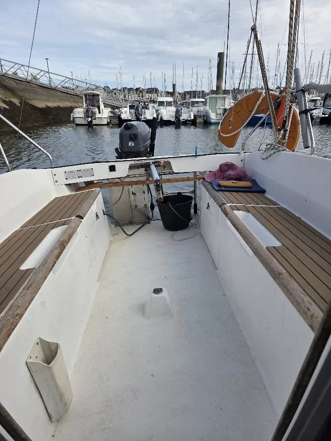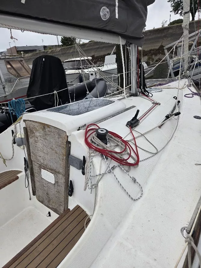 VOILES : Génois Enrouleur All Purpose 2011 / Grand-Voile 2 ris All Purpose 2011 / Spi Asymétrique All Purpose 2006. ACCASTILLAGE / GRÉEMENT : Renvois des drisses au cockpit / Gréement de spi avec bout dehors / Barre franche et double safran / Lazy bag et Lazy Jack. ÉQUIPEMENT EXTÉRIEUR : Échelle de bain / Mouillage secondaire / Béquilles d'échouage démontables en acier galvanisé / Bouée fer à cheval et feu de retournement. ÉQUIPEMENT INTÉRIEUR : 4 couchages / Circuit électrique 220 / 12 V + Prise de quai avec chargeur de batterie / Feux de mouillage et de navigation / Table pliante / Évier avec réserve d'eau douce 35 L + pompe à main / Réchaud gaz / 1 batterie / Extincteur et feux de détresse. ÉLECTRONIQUE : Loch-speedo / Sondeur Raymarine ST 40 / Compas / VHF portable. ENTRETIEN : Hivernage sur chantier / Voiles, matelas et coussins stockage au sec / HB en atelier / Nettoyage bateau et Antifouling annuel / Factures disponibles sur demande.