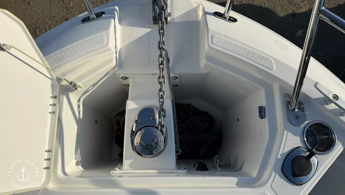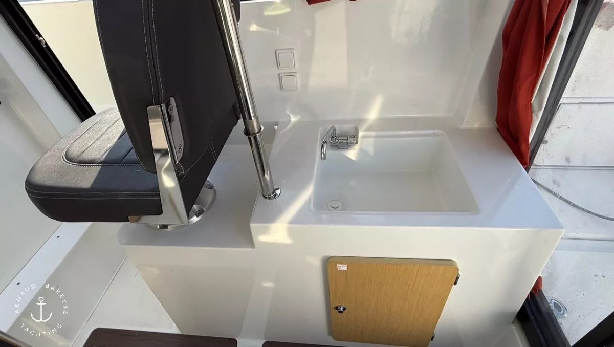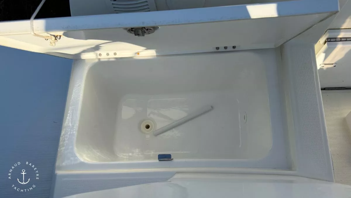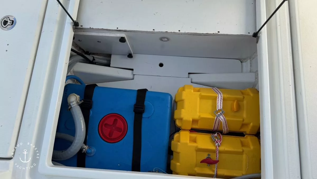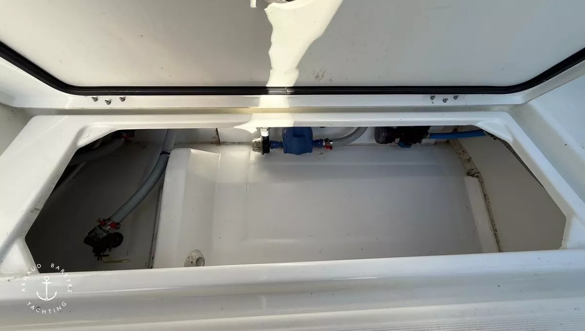 Réservoir eau douce 50 litres, évier avec robinet dans cabine et douchette de pont