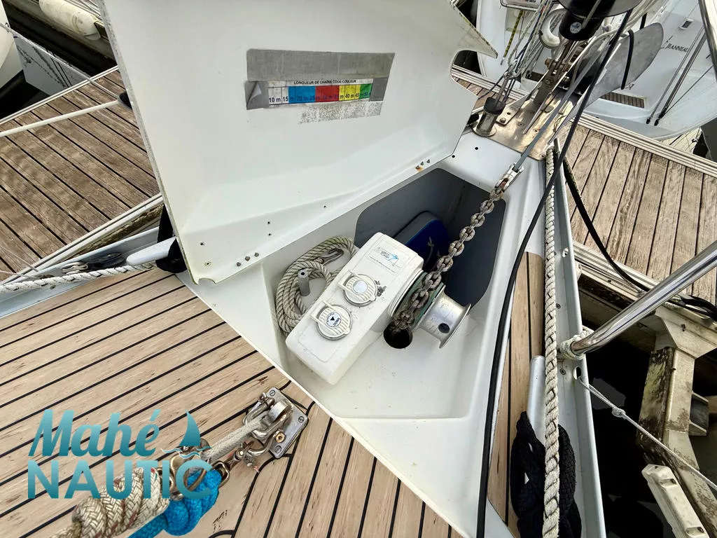 MOUILLAGE PRINCIPAL : ancre delta 16 kg avec 50 mètres de chaîne diamètre 10, mouillage secondaire : ancre plate 16 kg avec 20 mètres de chaîne diamètre 10 mm