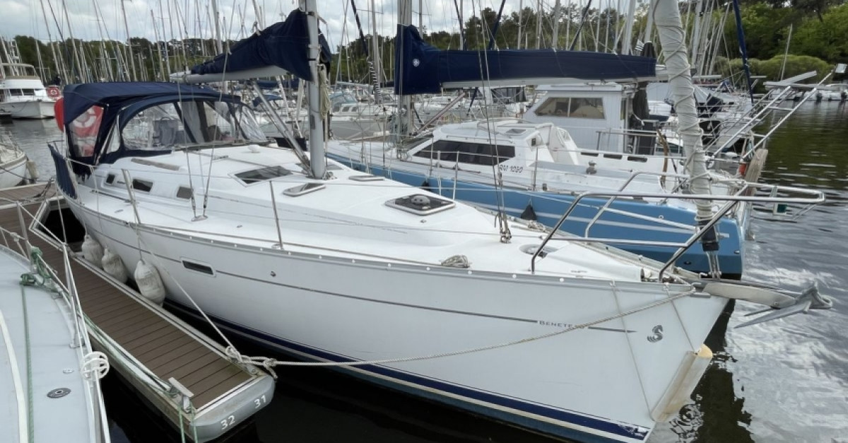 OCEANIS 343, 2008, YANMAR 3YM30, 29 cv (1000 env h), Version Célébration (mât performance), Version d'aménagement intérieur 1 cabine avant, 1 cabine arrière, Hublot ouvrant supplémentaire dans la cabine arrière, 2 winchs sur roof pour réglages et manoeuvres - Harken 32ST, Rail d'écoute de grand-voile sur le roof, Table de cockpit avec abattants bois, Barre à roue inox pivotante gainée cuir, Capote de roof (révisée 2025), Bimini top cockpit, Coussins de cockpit, Guindeau électrique - Quick, Tauds de fermeture arrière complète du cockpit, Grand-voile full batten, Lazy-bag de grand voile, Lazy-jacks de grand voile, Enrouleur de génois avec tambour sur le pont, Génois sur enrouleur (2017), Etai largable avec système de tension, Voile de brise pour étai largable, Pilote automatique in board Raymarine, Répétiteurs Raymarine i60 et P60 cockpit (2020), GPS / lecteur de carte dans le cockpit - Raymarine A60, Radar avec radôme sur support de mât - Furuno Model 1623, VHF ASN à la table à carte - Raymarine Ray54E, Unité réfrigérante 12 V porte frontale, Eau chaude et froide sous pression, Gazinière 2 feux + four, Prise de quai 220 V + chargeur de batteries - Dolphin 25A, 2 x Batteries service, Prises intérieures 220 V, Chauffage WEBASTO, Réservoir rigide eaux noires, Mouillage principal, Amarres et défenses, Annexe , Moteur hors-bord - Honda 2.3cv 4tps, Mêmes propriétaires depuis 2008, Visible Bretagne. Pour plus d'informations ou pour fixer un rendez-vous de visite, contact : Jean-Baptiste Lemaire 06 10 25 00 03 - jb@antipode-yachts.com