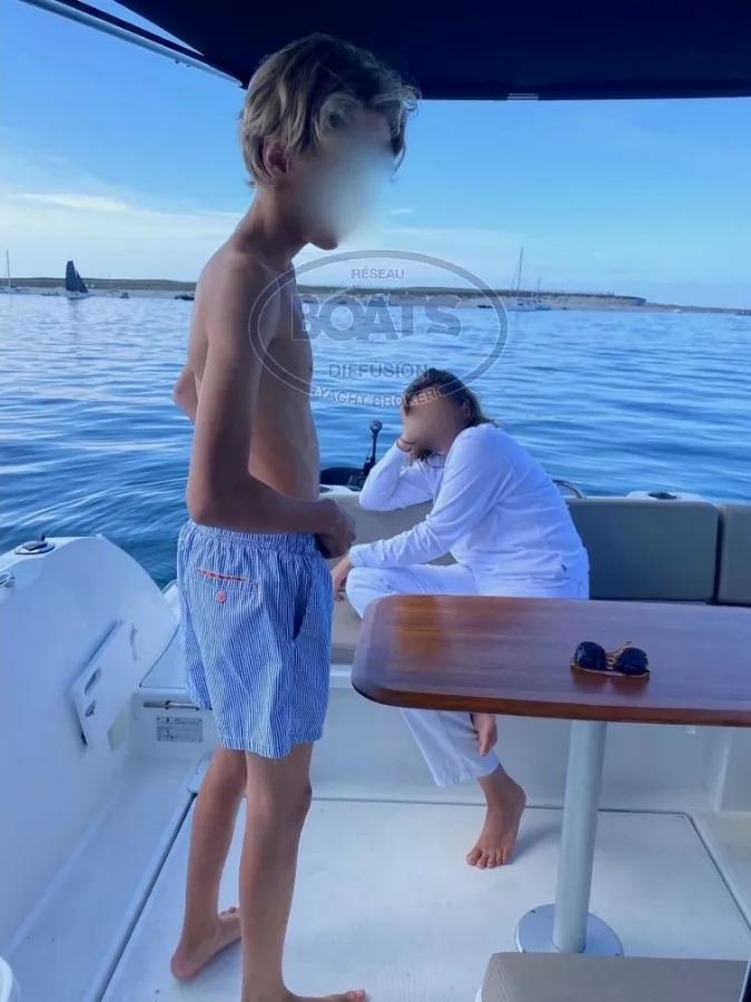 SWIFT TRAWLER 42, 2009, VOLVO D4, 2 x 300 cv (1128 h), Propulseur d'étrave, 1 cabine avant propriétaire, 1 cabine invités : lit double et 1 lit simple superposé (démontable), 2 cabinets de toilettes et douche, Planchers stratifiés, Selleries carré tissu Altra Chanvre, Table de carré convertible en couchette double, Cockpit latté teck, Cagnards de flying bridge dans les filières (2023), Guindeau électrique - LEWMAR, Commandes guindeau à pied, aux postes de fly et de timonerie, Bimini flying bridge, Sellerie flying bridge, Housse de siège flying bridge, Tauds de fermeture arrière complète du cockpit, Taud extérieur de timonerie, Pilote automatique in board Raymarine ST6002, Anémomètre Raymarine ST 40, GPS / lecteur de carte au poste de timonerie - RAYMARINE E120, GPS / lecteur de carte au poste de flying bridge - RAYMARINE E80, Cartographie électronique Europe, Radar avec radôme sur support de mât - RAYMARINE, AIS class B (transpondeur) - SIMRAD 50 , VHF ASN double poste - RAYMARINE RAY240E, Radio-CD-AUX-USB + HP, Hauts-parleurs cockpit (radio CD), Télévision dans le carré & antenne TV Glomex, Unité réfrigérante 12 V porte frontale, Chauffe-eau 220 V + échangeur, Eau chaude et froide sous pression, Gazinière 3 feux + four, Prise de quai 220 V + chargeur de batteries - Cristec 40A, Prises intérieures 220 V, Chauffage à air pulsé WEBASTO (2 unités), Réservoir rigide eaux noires, WC électrique (salle d'eau propriétaire), Douchette de cockpit eau chaude / eau froide, Radeau de survie 6 personnes Type 2, Mouillage principal ancre Kobra 25kg + 90m de chaine (2017), Coupe orins (2017), Amarres et défenses, Bateau de propriétaire, jamais loué, Visible Bretagne Sud, Pour plus d'informations ou pour fixer un rendez-vous de visite, contact : Jean-Baptiste Lemaire 06 10 25 00 03 - jb@antipode-yachts.com