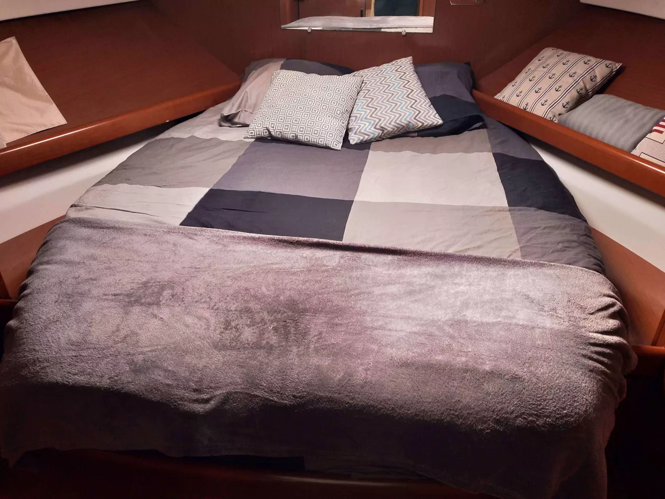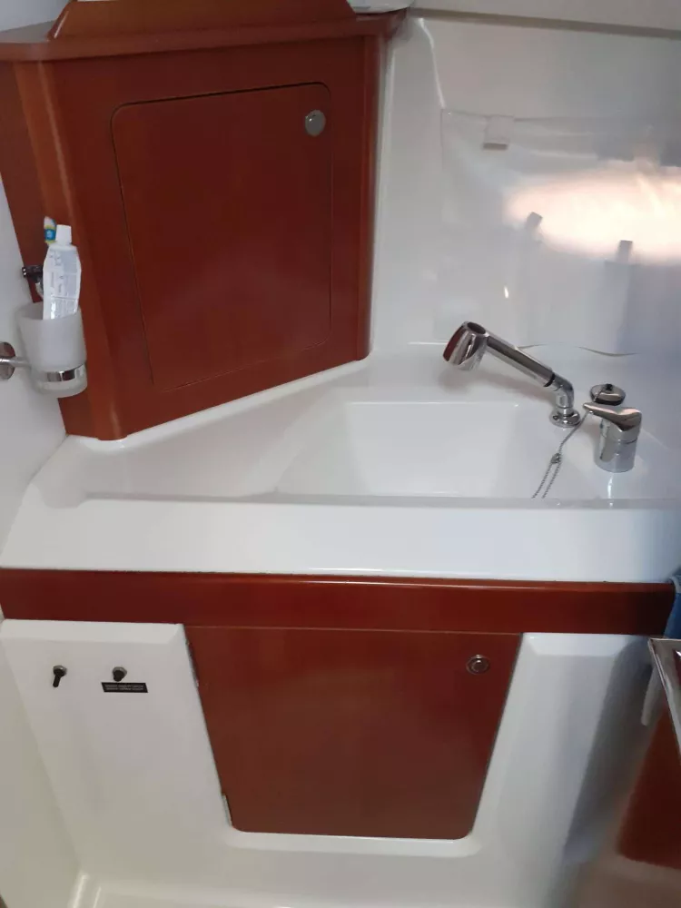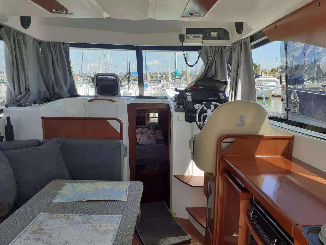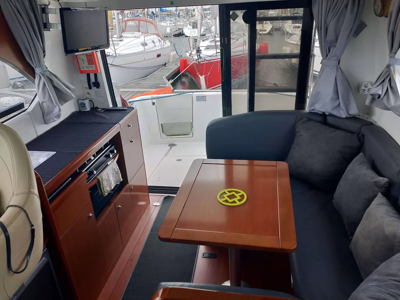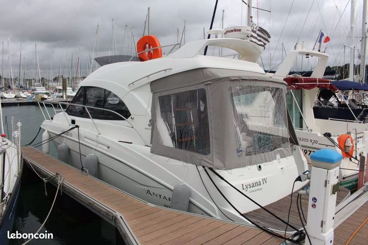 *Équipements : Guindeau électrique, Propulseur d'étrave, Protection d'hélice, Coupe orins, Flaps électriques rétractables, Plateforme arrière en teck, Portes cannes, Pompe de lavage eau de mer, Douchette de cockpit eau chaude / froide, Taud de soleil, Taud de fermeture arrière du cockpit, Toile de protection des vitres avant du poste de Pilotage, Échelle de bain, Table de cockpit amovible à l'arrière, 2 essuie-glaces (2022), Réchaud à gaz fixe 2 feux, Four, Réfrigérateur, Eau douce sous pression 145L, WC Marin + réservoir à eaux noires, Douche, Chauffe eau 25 L, Pompe de cale électrique, Éclairage leds, Prise de quai 220V + chargeur, 4 batteries (2 de servitudes, 1 moteur et 1 propulseur)(2018), Table de cockpit , TV dans le carré, Taud de flybridge, Vivier avec pompe à eau de mer.