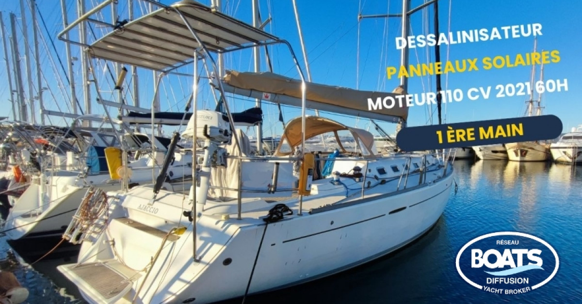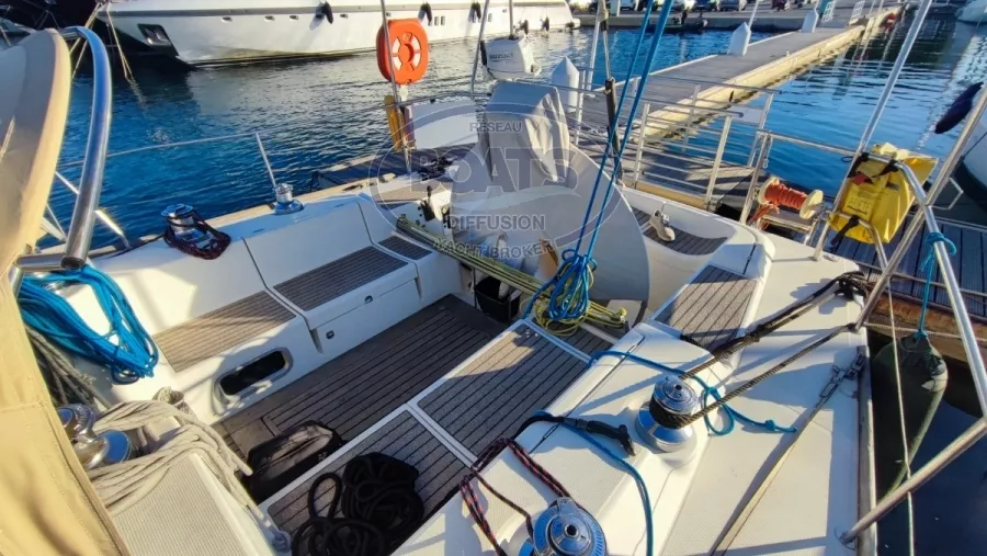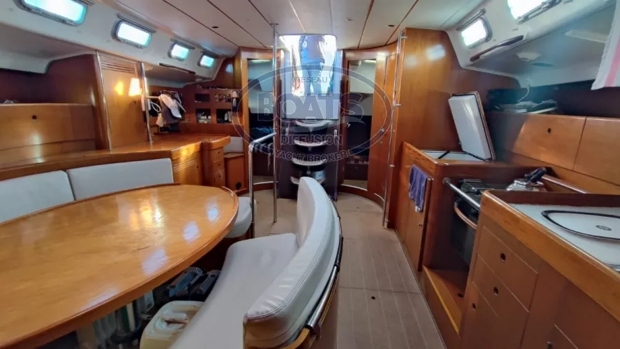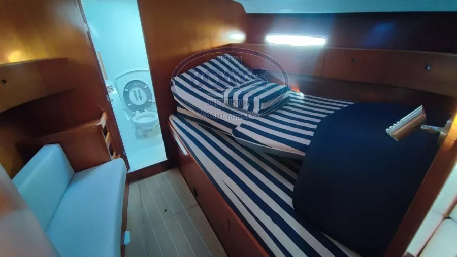 First 47.7 première main bien équipée pour la croisière mais aussi pour la régate avec déssalinisateur double réfrigérateur eutectique. Jeux de voile et moteurs récents. Plancher, table de cockpit d'origine disponible, table allégée et plancher balsa à poste. Filières et chandeliers d'origine disponibles.