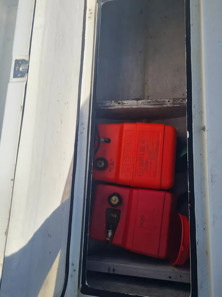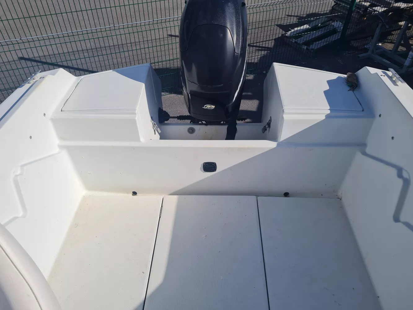 Siège pilote + Siège pêche / Grande cabine pour le rangement / Coffre sous pont / 2 nourrices de 25L.