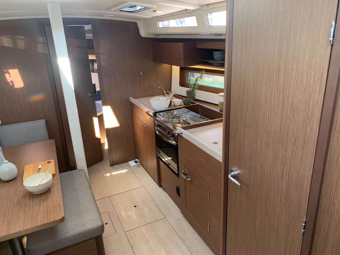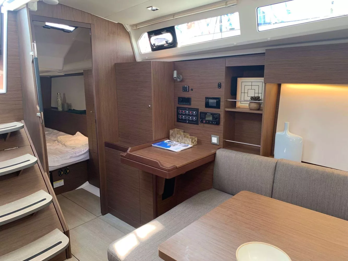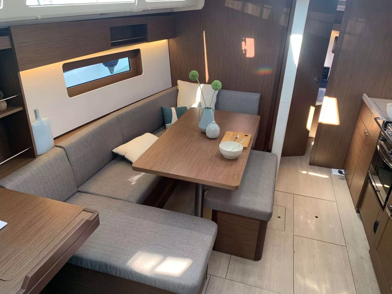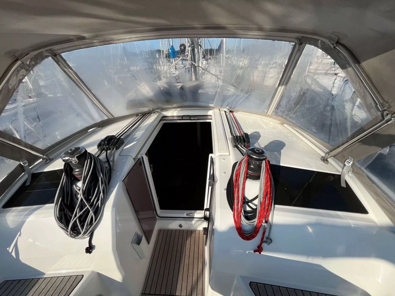Version GTE, Motorisation Yanmar 40 CV (115 Heures de marche seulement), version 3 cabines 2 salles d'eau Alpi-Noyer, finition confort, pack Upwind-Downwind, Pack Offshore Raymarine, AIS 700 Raymarine, Winch électrique à babord, Lasy bag natural, code 0 sur emmagasineur, German system de Grand Voile, Protection d'étrave inox, guindeau électrique avec commande à distance et compteur de chaine, kit mouillage, capote de roof, bimini, housse de table et barre à roue, table de cockpit luxe, ouverture de coupée, coussin de cockpit Dolce 51, prise eau douce de quai, pompe à pied, porte verticale glacière, chauffage fuel à air pulsé, WC électrique arrière tribord, coque blanche, hublot ouvrant cabine arrière, stores hublots carré, Antenne TV et TV dans le carré, fond de cockpit en iro-deck, propulseur d'étrave, Support de moteur hors-bord.