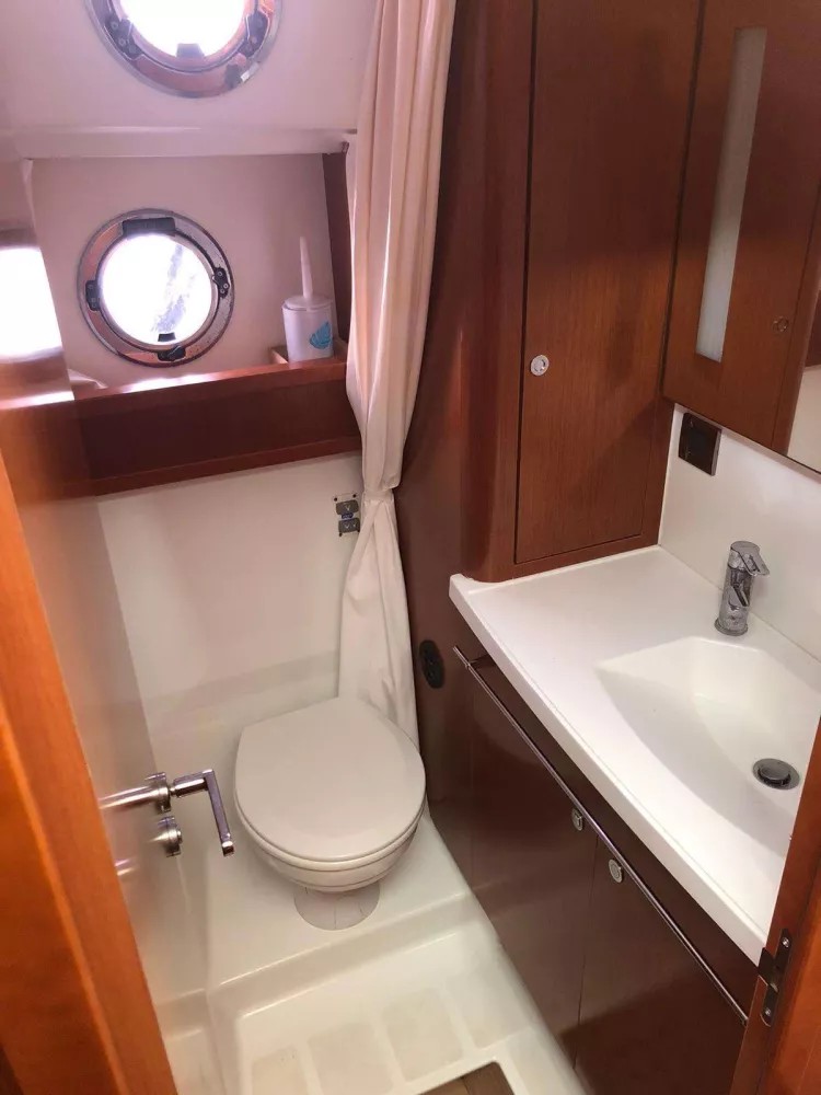*Intérieur : 2 cabines double + Carré transformable en couchage double, Cuisine en U (avec 2 éviers eau chaude/froide sous pression, groupe d'eau + chauffe eau remplacés en 2023, Four, Réchaud gaz 3 feux, Réfrigérateur 130L...), 2 Salles d'eau avec WC électrique + douche, Chauffe eau sur échangeur moteur et 220V, Chauffage fuel à air pulsé ...