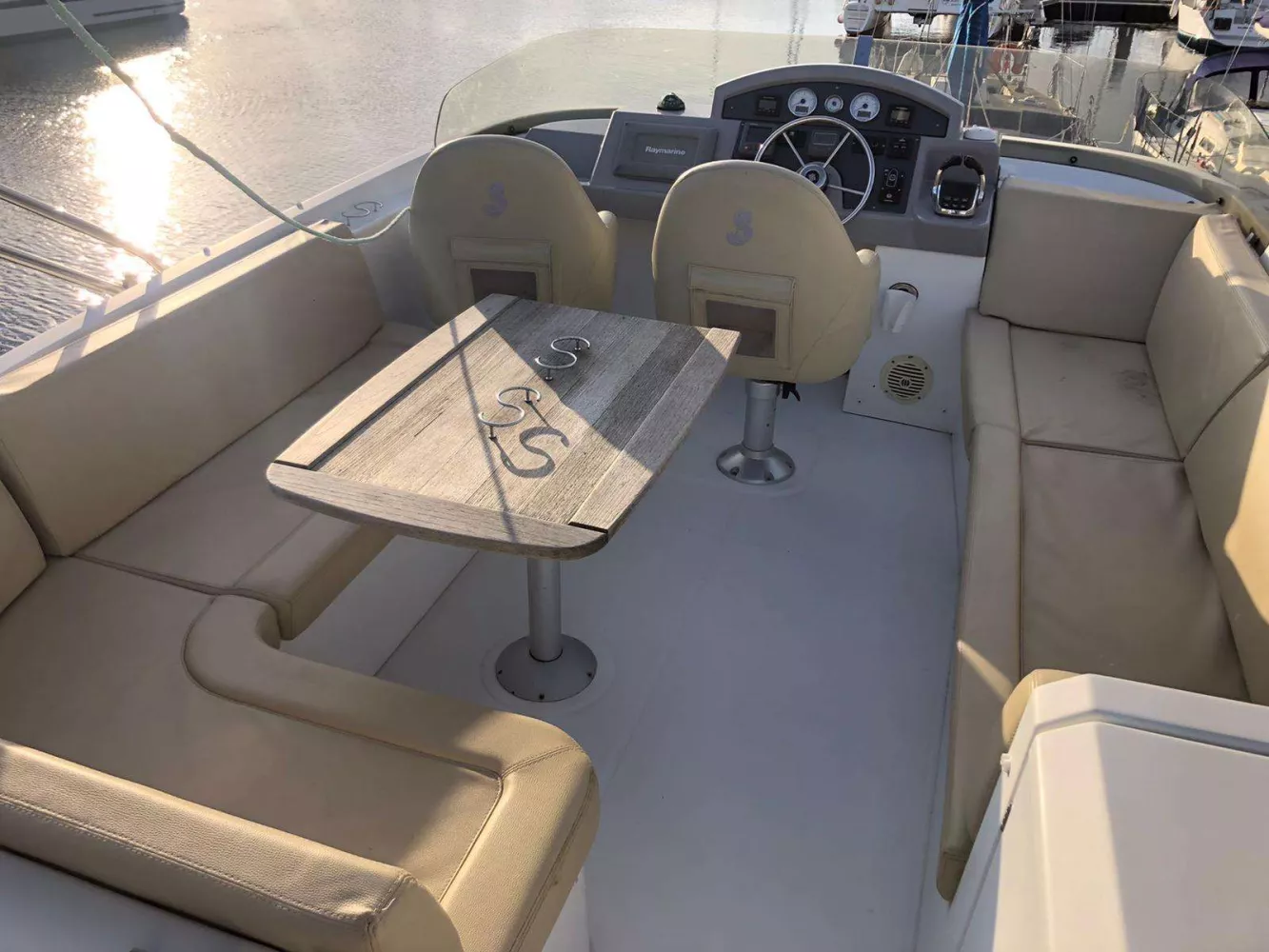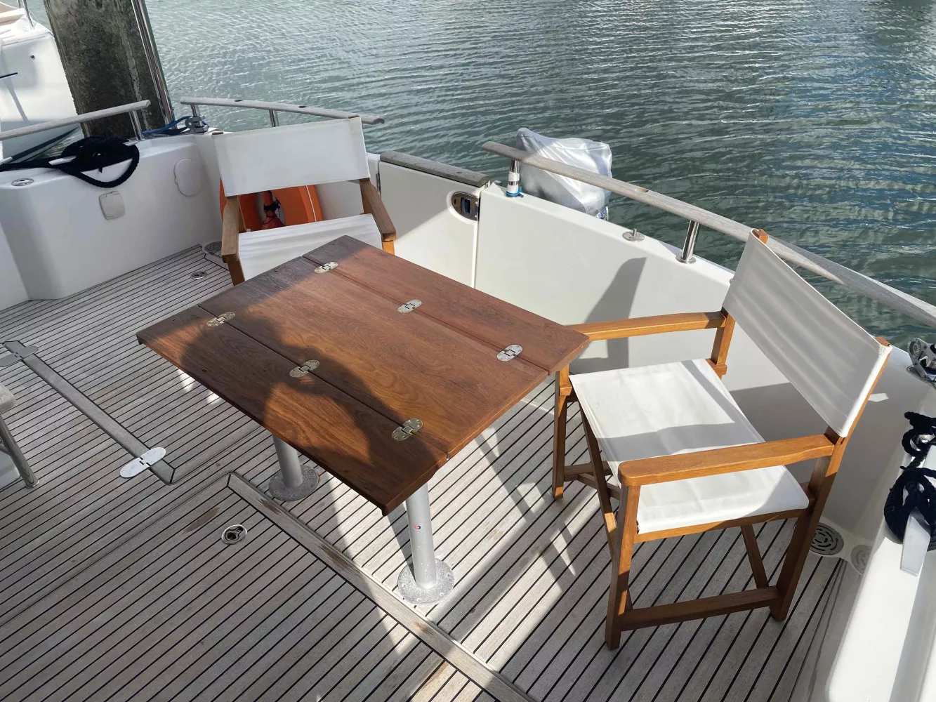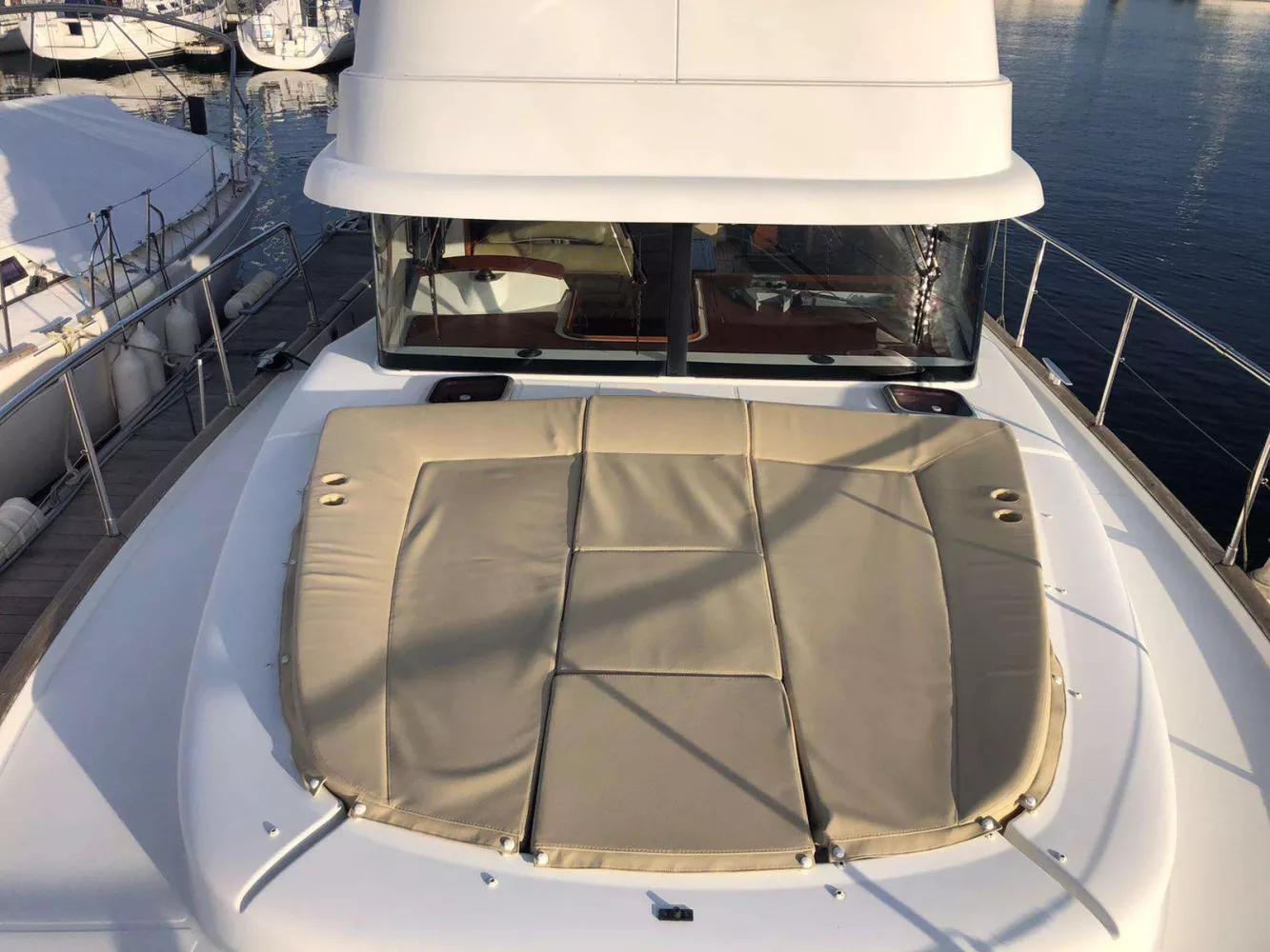 *Extérieur : Guindeau électrique, Propulseur d'étrave, Propulseur de poupe, Générateur 9.5 kVA 220V, Flaps électriques, Plateforme de bain arrière lattée teck, Bain de soleil avant, Taud de fermeture de cockpit arrière (2022), Bimini de Flybridge (2022), Mât de charge sur Fly ...