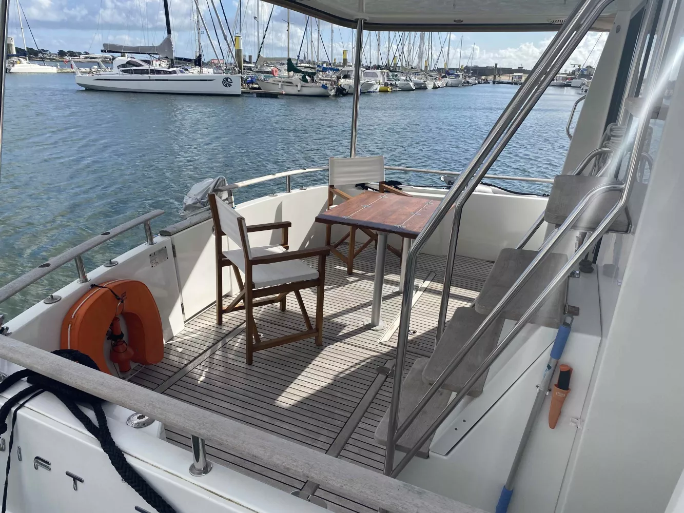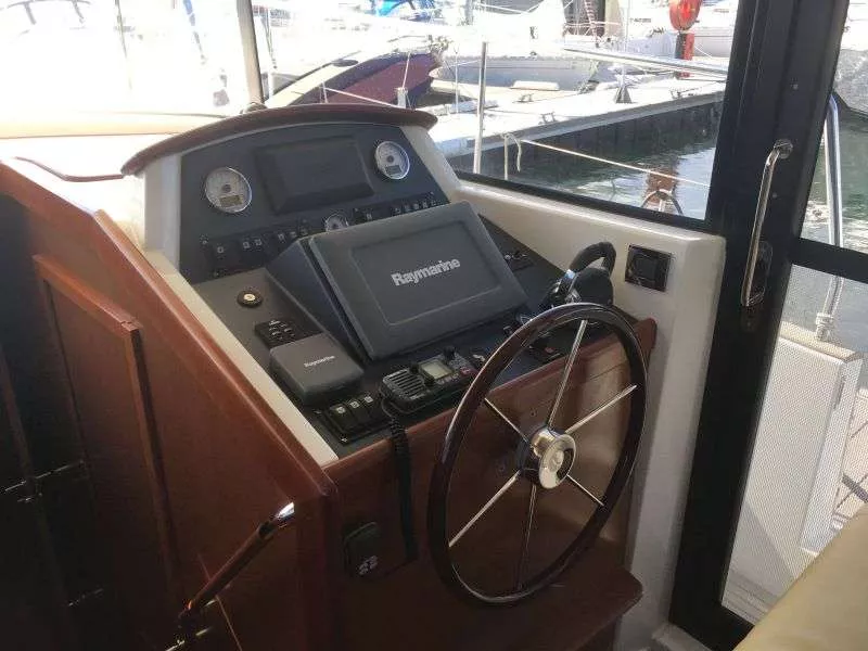 *Électronique : Écrans multifonctions Raymarine : 9" extérieur avec commande sur Fly + 12" intérieur dans la timonerie, Pilote automatique double poste, VHF Fixe, Lecteur CD/MP3/USB + Haut-parleurs ...