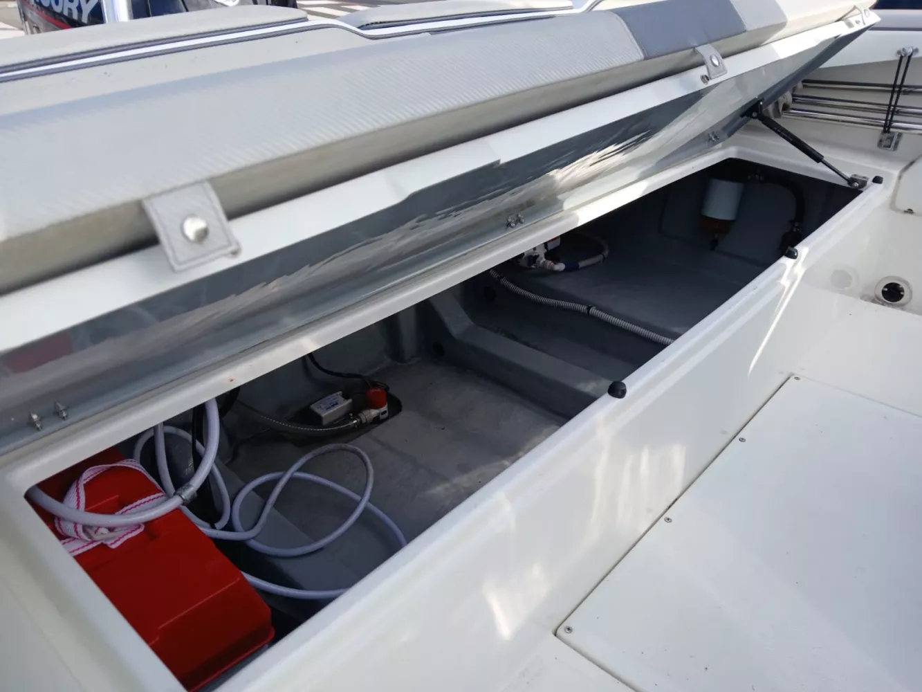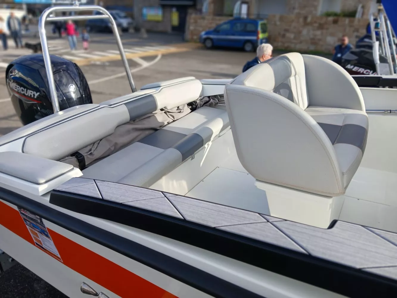- Pack Touring (coffre avant en U avec bain de soleil, table avec extension du bain de soleil, siège confort, tissus Luxury, volant Touring, coussin de protection de proue, coussin de spoiler poupe)0