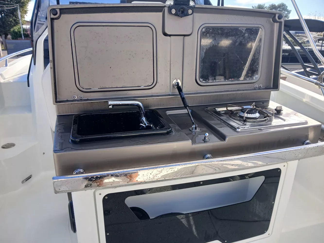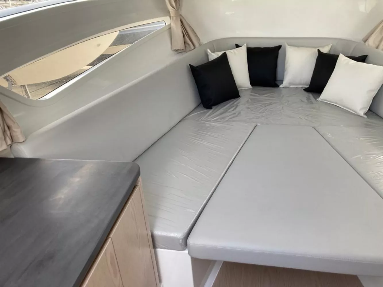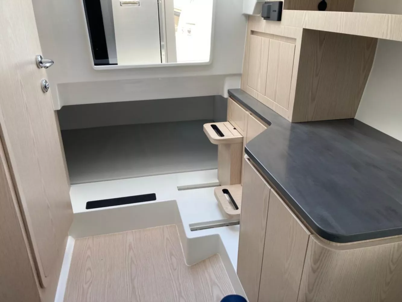 Équipé de 2+2 couchages et d’une hauteur de cabine conçue pour le confort, ce bateau est la solution idéale pour ceux qui souhaitent vivre des mini-croisières en toute liberté. Chaque espace à bord est fonctionnel et harmonieux. Le bain de soleil à la proue, le poste de pilotage, le cockpit avec cuisine intégrée et les plateformes arrière vous invitent à des séjours mémorables. Le design moderne de sa coque vous permettra d'obtenir d'excellentes performances, tout en assurant une sécurité maximale pour votre famille ou vos amis.