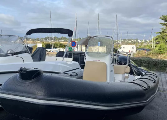 Ce semi-rigide allie élégance et praticité avec sa sellerie beige raffinée et son flotteur en hypalon noir au look sportif. Il est équipé d’un GPS traceur Simrad pour une navigation précise et sécurisée, d’un roll-bar pour un style moderne et une meilleure protection, ainsi que d’une échelle de bain facilitant l’accès à bord après la baignade. Un bateau idéal pour conjuguer confort, performance et plaisir en mer.