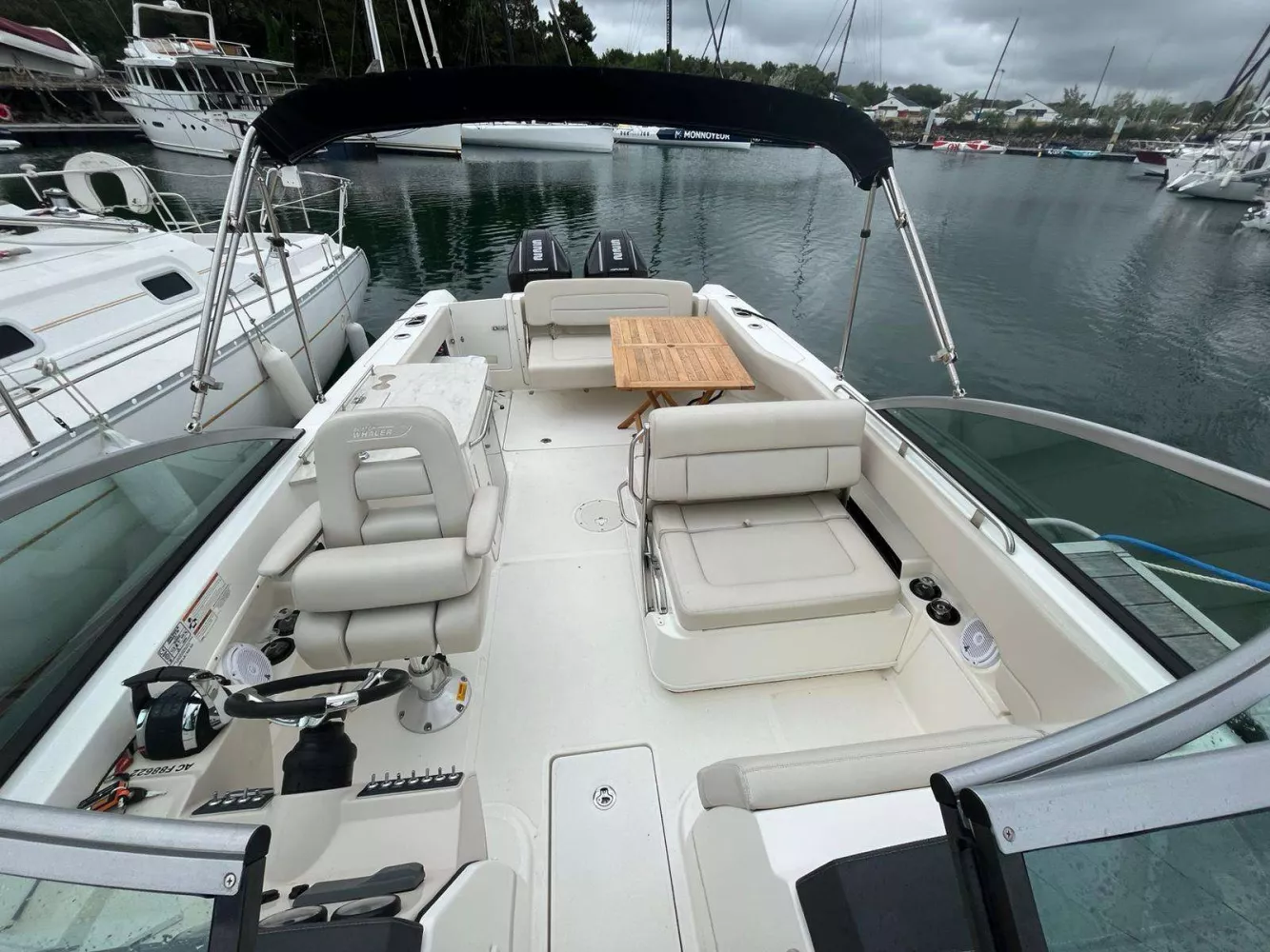 * Cockpit avant et cockpit arrière comprenant selleries assises + dossiers avec passage centrale - pare-brise rabatable