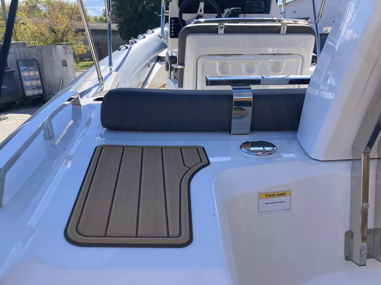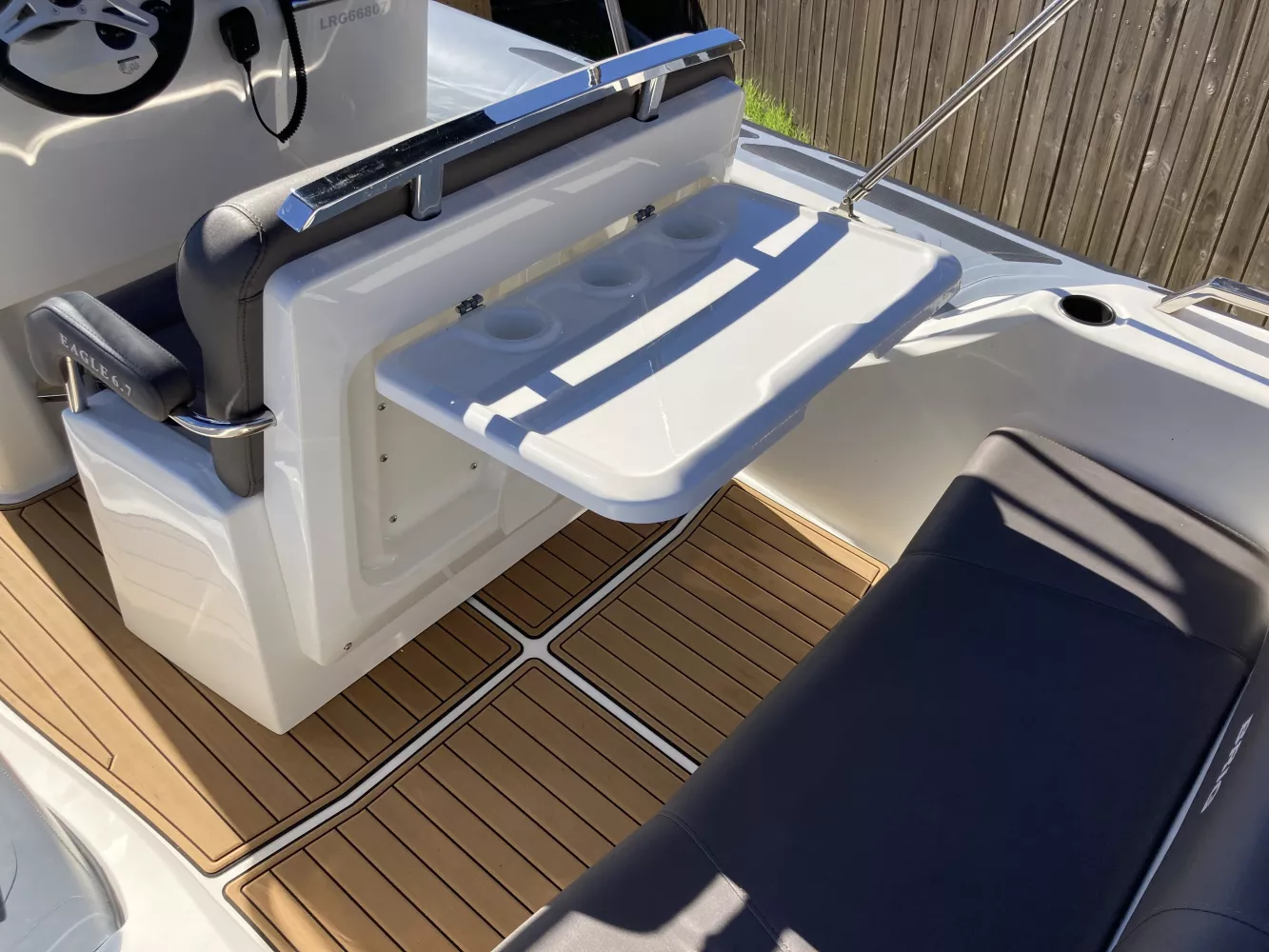 - Pont en teck synthétique (confortable et facile d’entretien)
