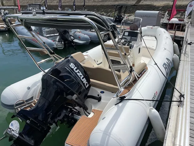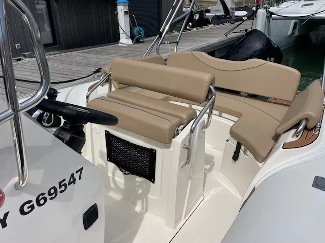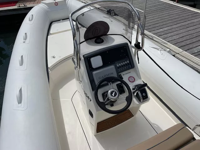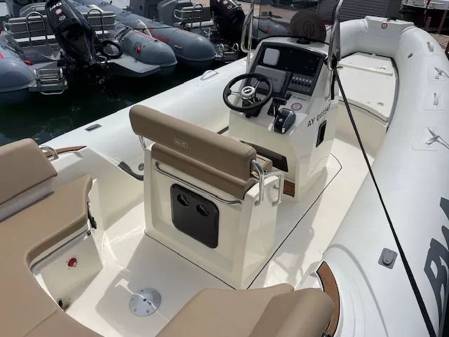 Semi-rigide de 6m50 très confortable avec un bon tempérament marin, convivial au mouillage mais aussi apte à affronter la mer formée en sécurité. Sa taille d’un peu moins de 7 mètres le rend facile à manœuvrer. Son moteur de 150 cv lui offre une grande polyvalence pour faire du ski nautique, de la promenade ou encore de la pêche.