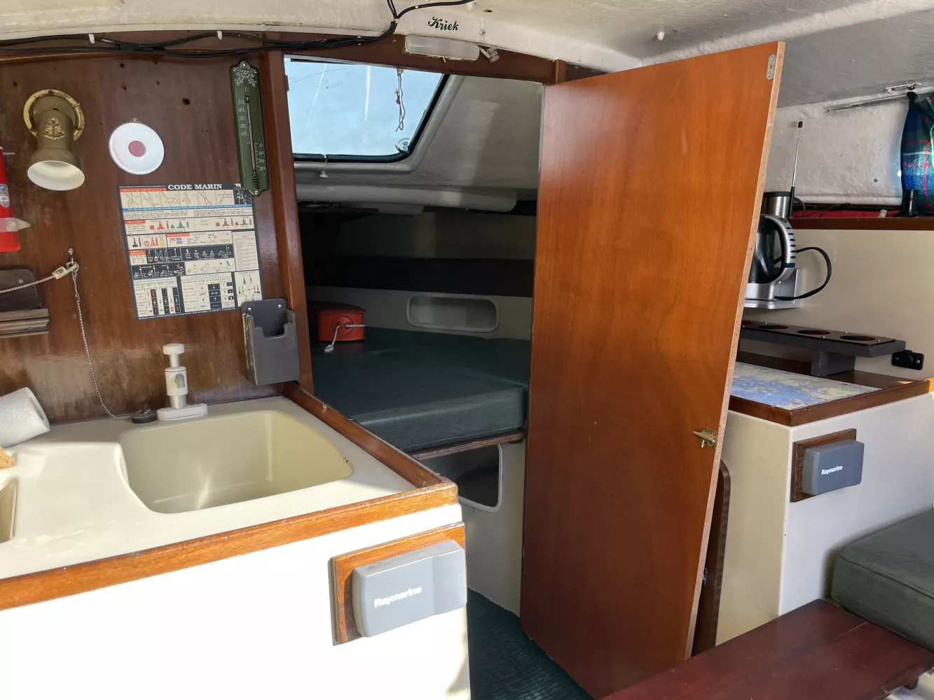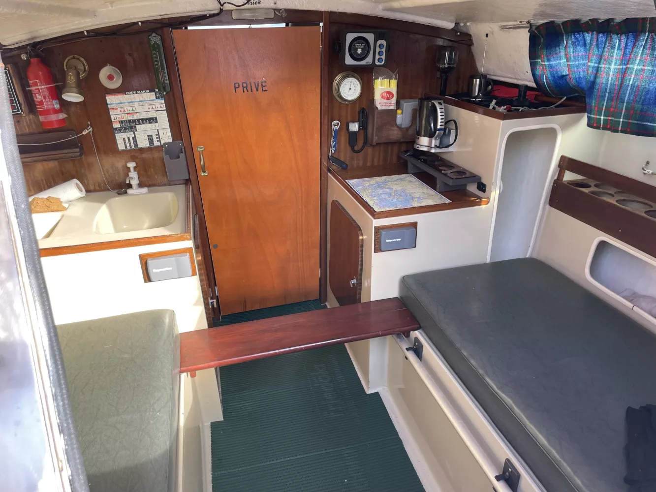 Le CALIFE est un petit bateau échouable sur béquilles. Idéal pour navigations du week-end en croisière côtière et profiter des Iles de Bretagne Sud.