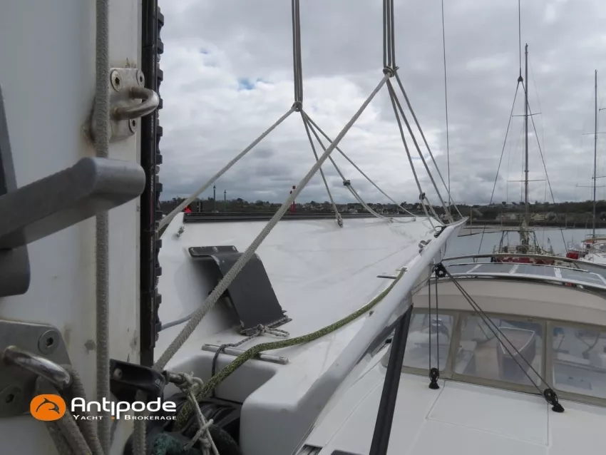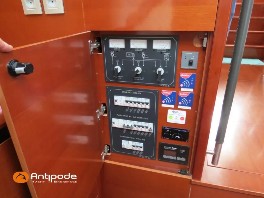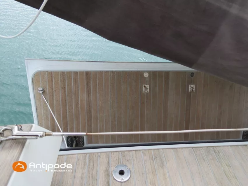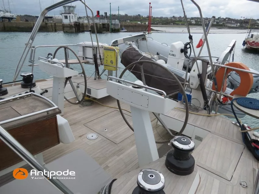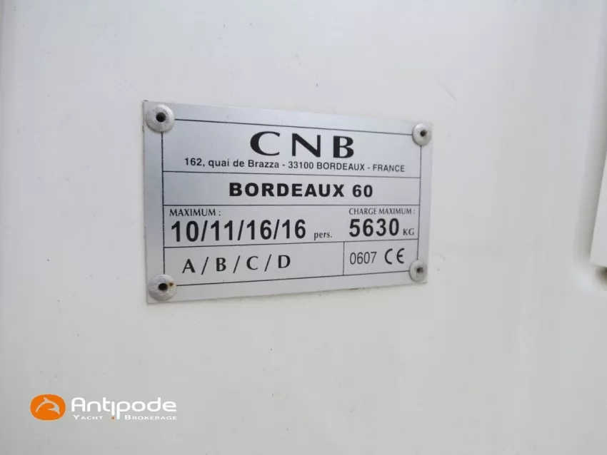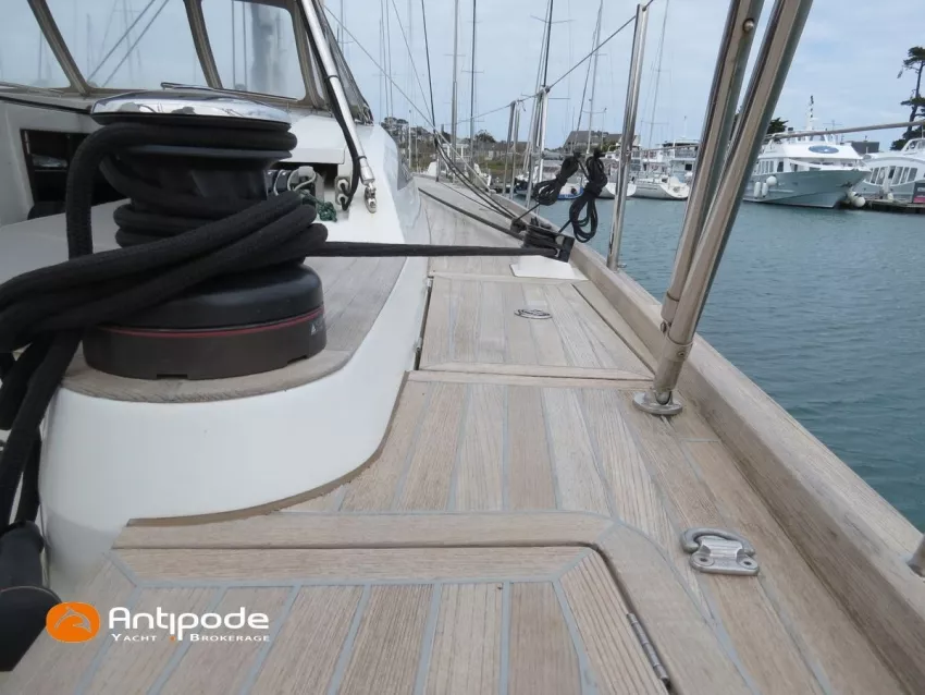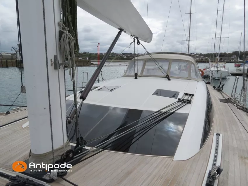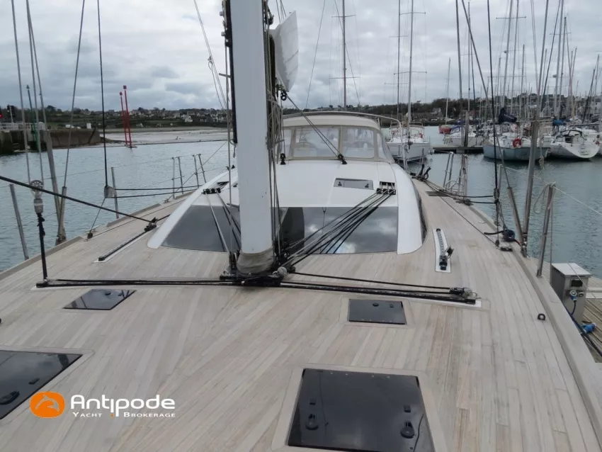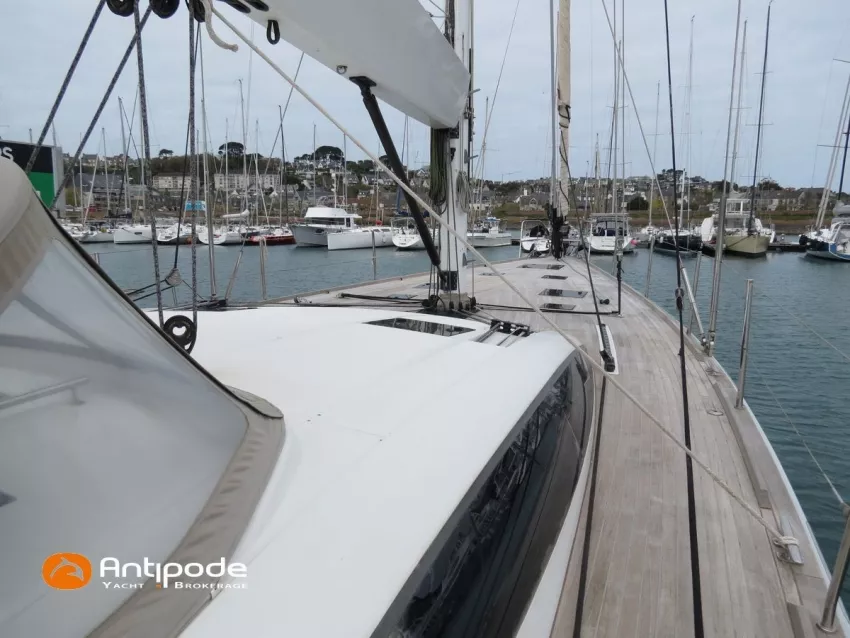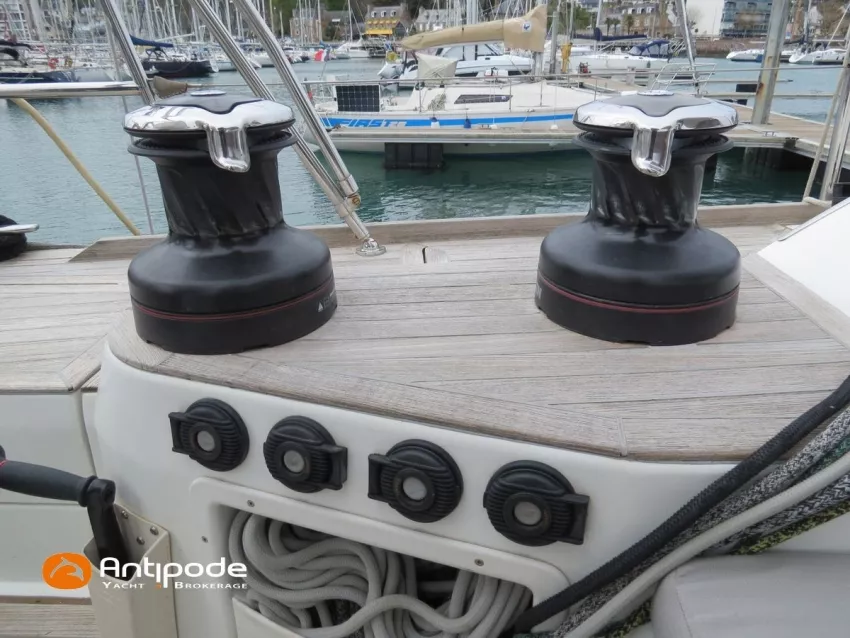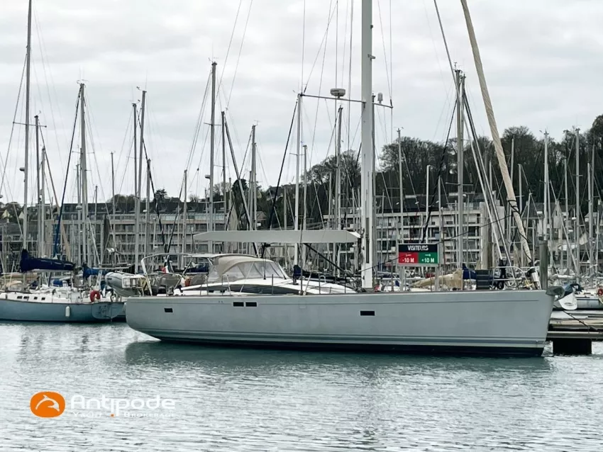BORDEAUX 60, 2012, VOLVO D4, 180 cv (1714 h), Version d'aménagement intérieur 1 cabine latérale avant avec couchage sur babord, 2 cabines arrières, 3 cabinets de toilettes et douche, Selleries carré cuir blanc crème, 4 winchs électriques dans le cockpit - Harken (2 X 60 / 2 X 70), Passavants teck, Double barres à roue carbone, Capote de roof - 2022, Bimini hard top cockpit with solar panels, Prolongateur du bimioni top au dessus des postes de barres - 2022, Coussins de cockpit avec dossiers - 2025, Guindeau électrique - Lewmar V5 2000 W 24 V, Bossoirs avec palan de levage d'annexe - Simpson Davits, Mât aluminium Maréchal laqué blanc, 3 étages, posé sur la quille, Gréement courant Dyneema 2024, Grand-voile full batten 3 ris 95 sqm - Incidences Hydranet 2021, Rail de guindant de grand voile + chariots de lattes - Harken, Enrouleur de génois électrique - Bamar, Génois sur enrouleur 108 % 85 sqm - Incidences Hydranet 2021, Trinquette autovireuse sur enrouleur 45 sqm - Incidences Hydranet 2022, Pataras réglable, 2 vérins Hydrauliques Navtec, Pilote automatique in board Raymarine + controleur de course SPX 3, Centrale de navigation Raymarine ST 70 PLUS, GPS / lecteur de carte à la table à carte - Raymarine E120 W, GPS / lecteur de carte dans le cockpit - Raymarine E120 W, Radar avec radôme sur support de mât - Raymarine 4 kw, Transpondeur AIS (émetteur récepteur) - AIS 650, Balise de détresse - Kannad, Unité réfrigérante 24 V ouverture par le dessus, Unité réfrigérante 24 V porte frontale, Conservateur froid négatif (freezer) - Vitrifrigo 160 l, Cave de réfrigération 6 bouteilles, Cuisinière 4 feux + four électrique - Techimpex Horizon, Machine à laver le linge / sèche-linge V - Mielle, 2 chargeurs de batteries - Mastervolt 60 amp / 24 V, 1 chargeur de batterie 12 V, Batteries service X 8 Gel Exide Marine 120 amp 24 V- 2023, Convertisseur 24 V / 220 V - Mastervolt 2500 W, Convertisseur 24/12 V pour électronique - Victron, 1 alternateur moteur 24 V, 1 alternateur moteur 12 V, Climatisation intégrée 220 V Webasto 60000 BTU, Générateur fixe 220 V - Cummins Onan 11 kw (1199 h), Dessalinisateur 12 V - Echo-tec 190 l / h 2020, Panneaux solaires - X 4, Toutes vannes de coques remplacées par des vannes PVC renforcé Marine Ball Valve True Design - 2025, Eclairages intérieurs à Leds, Radeau de survie 6 p révise 2025 - Seago Iso 9650-1 - Seago Iso 9650-1 (2020), Mouillage principal ancre DELTA 40 kg + chaine 100 m, Annexe semi rigide 3.10 - Caribe C 12, Moteur hors-bord - Honda 15 , Visible Bretagne. TVA payée. Pour plus d'informations ou pour fixer un rendez-vous de visite, contact : Jérôme Le Joubioux 06 07 45 71 73 - jerome@antipode-yachts.com